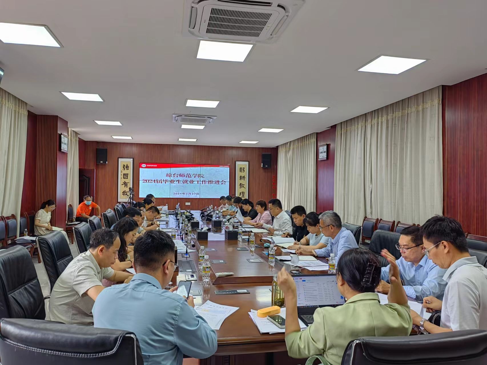 招生就业工作处负责人通报学校就业工作开展情况以及部署近期就业工作。教务处、学生工作部(处)、宣传统战部、校团委、学前教育学院、文学院、教师教育学院负责人分别汇报近期促进2024届高校毕业生就业工作举措及下一步计划。