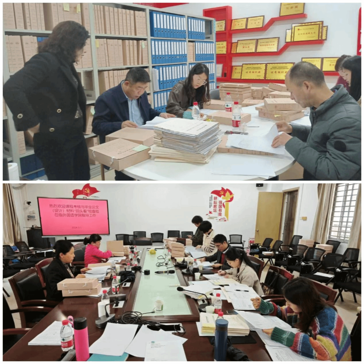 为进一步加强课程考核和毕业论文(设计)的规范管理,教务处于上学期末深入各教学单位组织开展了课程考核评价与毕业论文(设计)材料全覆盖专项检查工作,各教学单位根据检查组反馈的问题对有关材料及时进行了整改和完善。为进一步加强教学质量监控,强化教学管理规范,跟进材料整改落实情况,3月1日,副校长银海强带领教务处全体人员、教学质量监测与评估中心相关工作人员,联合各二级学院成立专项检查工作组,赴14个开课单位开展课程考核评价与毕业论文(设计)材料“回头看”检查工作。
