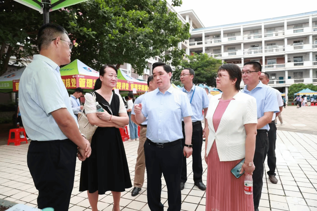 宣传统战部、党委学生工作部、人事处、保卫处、招生就业工作处负责同志及各二级学院党政领导陪同。