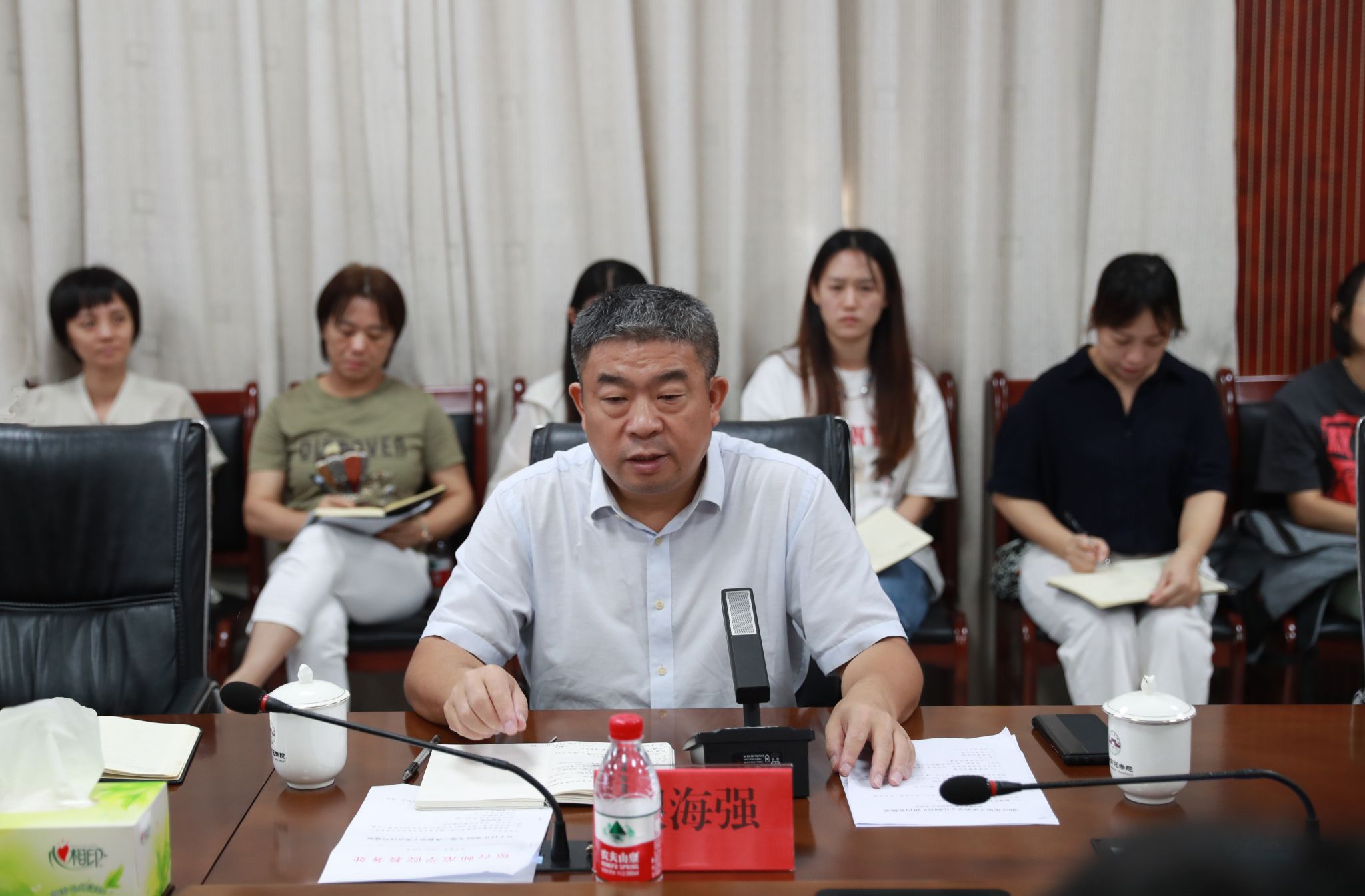 银海强在主持会议时指出,新学期开学在即,各学院要严把教学工作秩序关,做到有安排、有计划、有执行、有反思;有关教学部门要严格落实实验室安全检查,发现隐患及时排除,筑牢安全意识底线;各专业要重视新版人才培养方案和课程大纲修订工作,认真研读国家有关文件精神,抓好人才培养顶层设计,努力夯实人才培养基础;教师要认真备课,充分做好课前准备,用心上好每一堂课;教学管理人员要不断更新工作理念,提升工作效率,更好服务学校教学大局;各单位要以2024年本科教学工作合格评估为主要工作重点,对标对表开展各项工作,保质保量推进评建进程,确保学校顺利通过教育部本科教学工作合格评估。