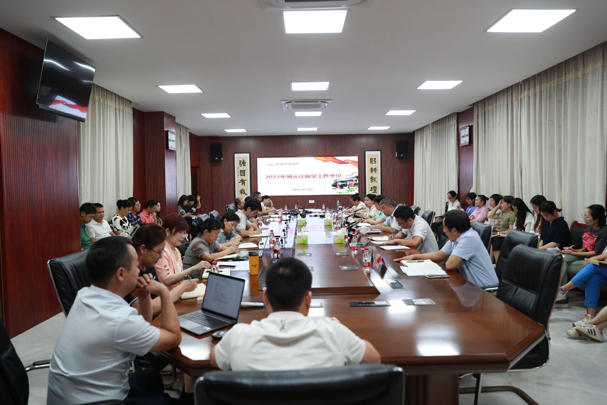 为稳步推进新学期开学各项教学工作顺利开展,推动落实教育教学及评估有关工作,进一步营造学校“齐心鼓劲、共谋大局”的教育教学工作氛围,8月31日,我校在行政楼三楼会议室举行2023年度第三次教学工作会议。我校党委副书记、校长刘湘洪出席会议并讲话。会议由党委委员、副校长银海强主持。