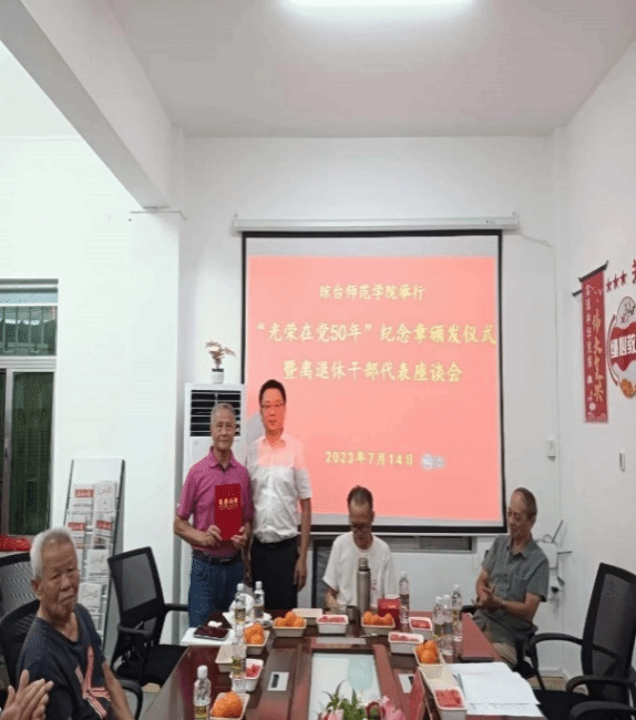组织部科长刘华民、“光荣在党50年”纪念章获得者及离退休干部代表等参加座谈会。