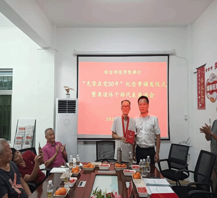 王华代表学校向荣获“光荣在党50年”纪念章的老同志致以崇高的敬意,向老党员们表示诚挚的问候。他指出,颁发“光荣在党50年”纪念章,充分体现了以习近平同志为核心的党中央对老党员的亲切关怀和政治褒奖,进一步增强了共产党员的荣誉感、归属感、使命感。
