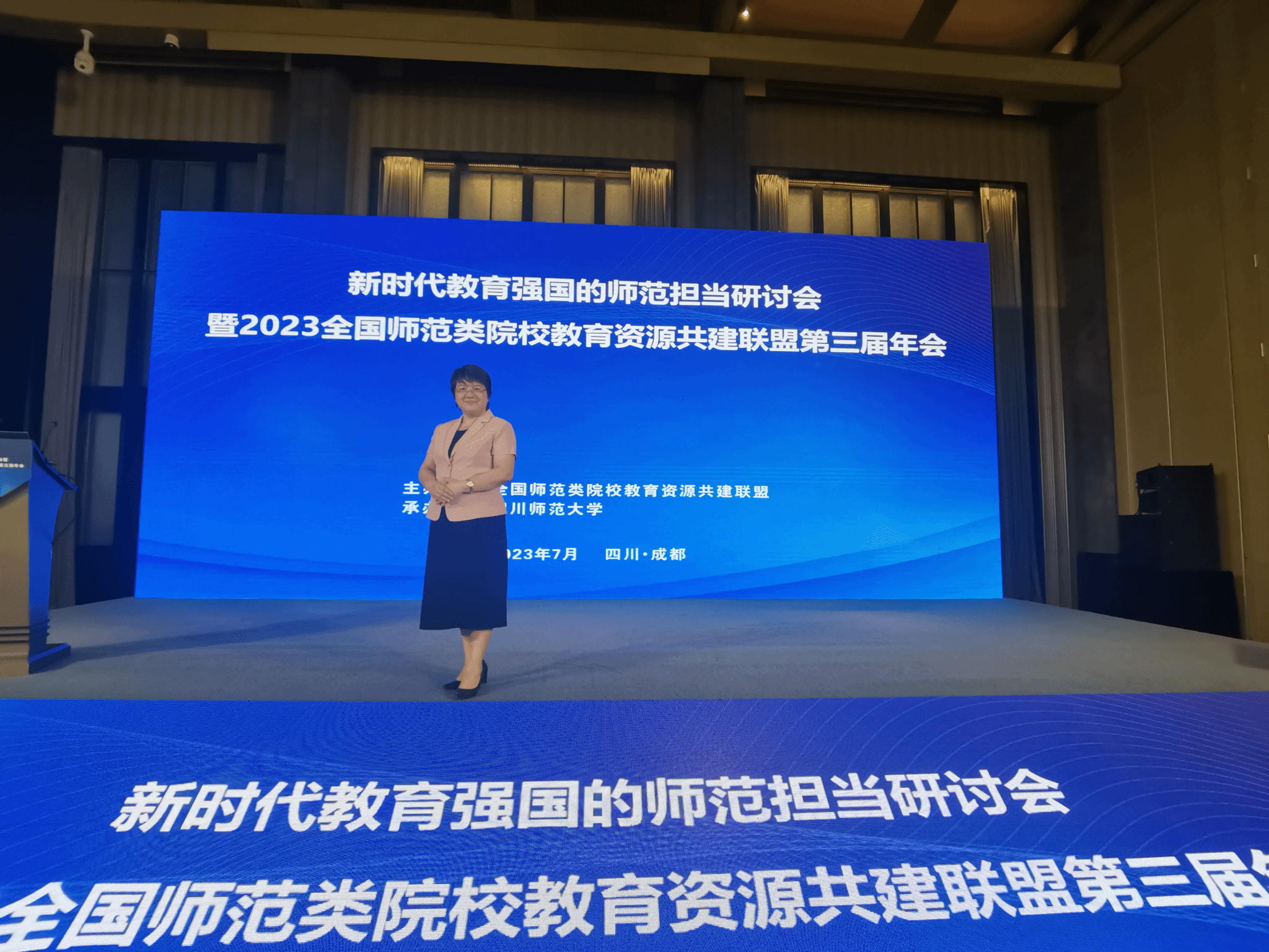7月2日,新时代教育强国的师范担当研讨会暨2023全国师范类院校教育资源共建联盟第三届年会在四川成都顺利召开。我校刘湘洪校长出席本次大会,并作主旨报告。