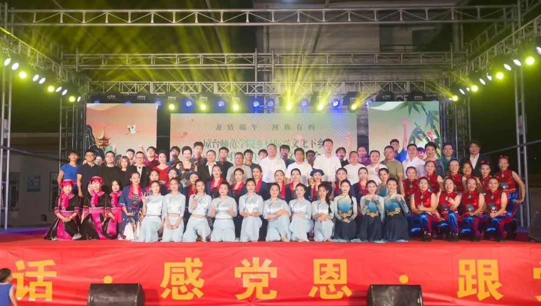 晚上,由我校音乐学院承办的端午文艺晚会在龙河镇龙塘中学举行,我校师生、龙河镇中心学校师生、龙河镇舞蹈队纷纷登台献艺,用舞蹈、歌曲、朗诵、器乐等形式讴歌党的二十大取得的伟大历史功绩,讴歌乡村振兴为农村带来的崭新变化。我校乡村振兴办、龙河镇委、镇政府、翰林镇委、龙河中学及附近村民观看了演出。