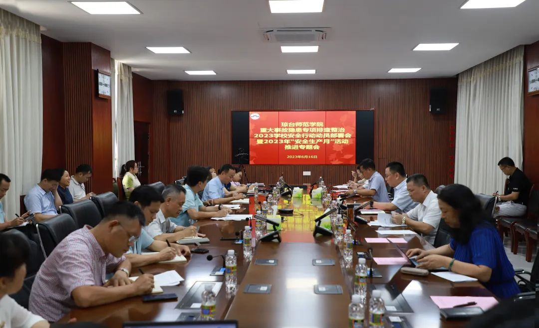 会上,还解读了《琼台师范学院重大事故隐患专项排查整治2023学校安全行动实施方案》和《琼台师范学院2023年“安全生产月”活动方案》,并传达学习了《海南省教育厅关于继续推进我省重大事故隐患专项排查整治2023年学校安全行动的通知》和《海南省教育厅关于印发<海南省教育系统2023年“安全生产月”活动方案>的通知》文件精神。