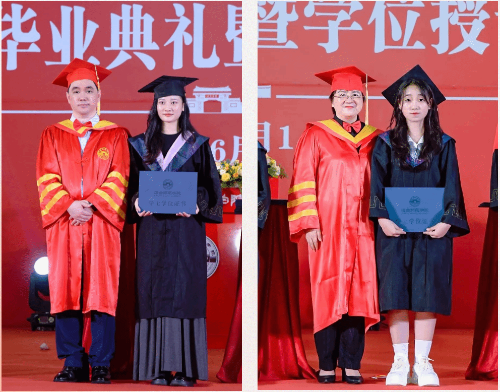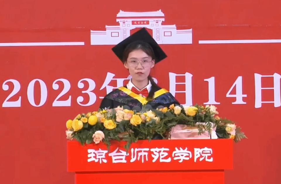 本科毕业生代表、信息科学技术学院2019教育技术学班的温馨发言。她分享了自己在琼台收获的成长和蜕变,表达了对大学四年时光的留恋,并号召所有毕业生未来仍要立德修身,志存高远,以实际行动践行琼台精神,服务社会,报效祖国。
