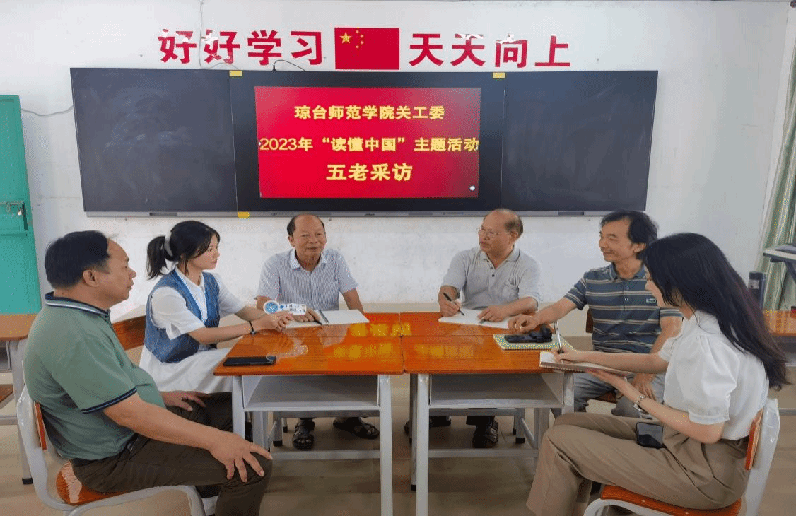 为积极推进2023年“读懂中国”主题活动,6月9日上午,我校关工委副主任王立紫和委员姚振学带领理学院5名师生,前往临高县景文学校采访该校老校长黄啟诗。理学院党总支书记劳文格参加了活动。