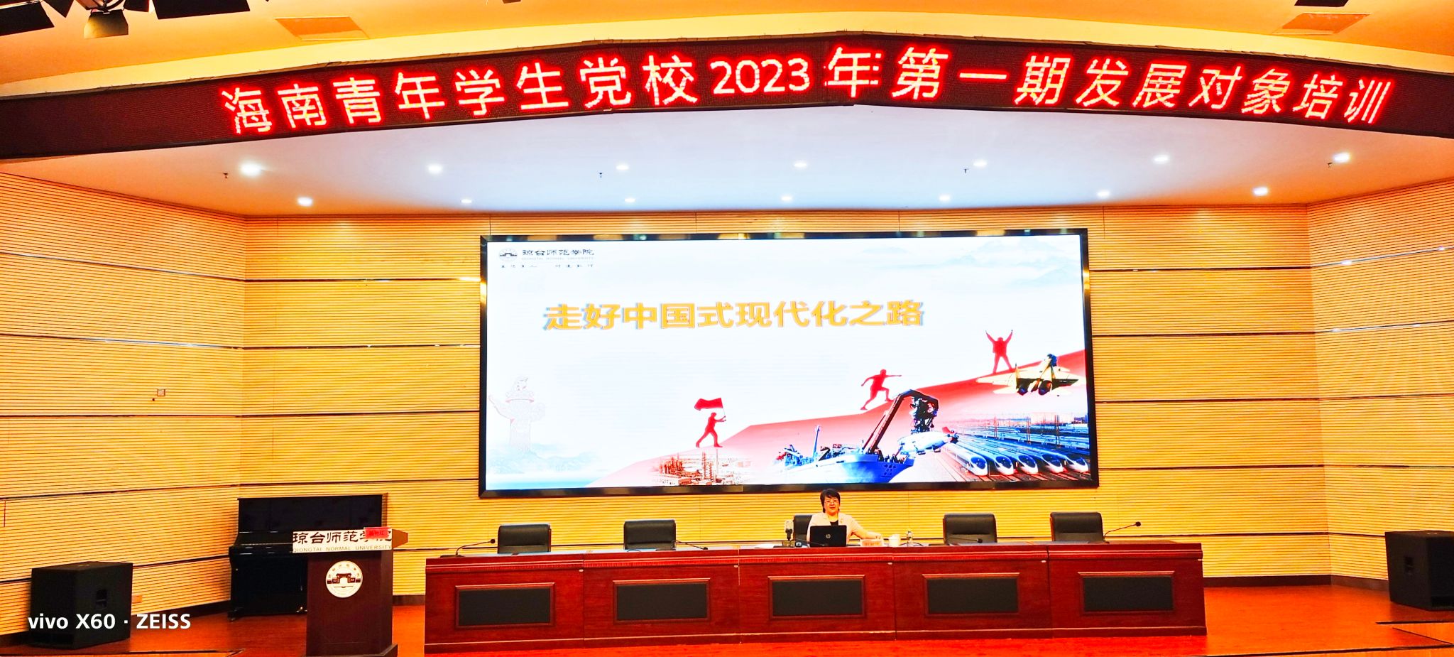 为进一步加强入党教育培训工作,提高发展党员质量,扎实推进学习贯彻习近平新时代中国特色社会主义思想主题教育走深走实。5月27日上午,学校党委副书记、校长刘湘洪在桂林洋校区图书馆报告厅为海南青年学生党校57名发展对象带来《学习宣传贯彻党的二十大精神,走好中国式的现代化道路》专题讲座。