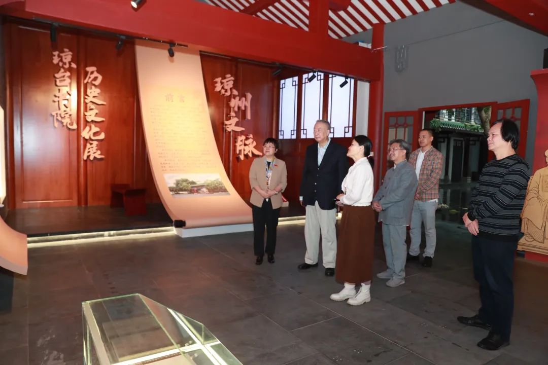 章新胜来到琼台书院博物馆,参观了琼台书院历史文化展、琼崖革命思想摇篮展和观摩美术学院承办的艺术沙龙活动。刘湘洪介绍了文起琼州的简况以及琼台兴文教、办新学等历史。她谈到,学校办学历史悠久,三百余年文教不衰、弦歌不辍,是进士摇篮、革命摇篮、教师摇篮,是海南书院教育的代表,也是海南进步思潮的发端,更是海南师范教育的起点,是海南基础教育教师的主要孵化场。
