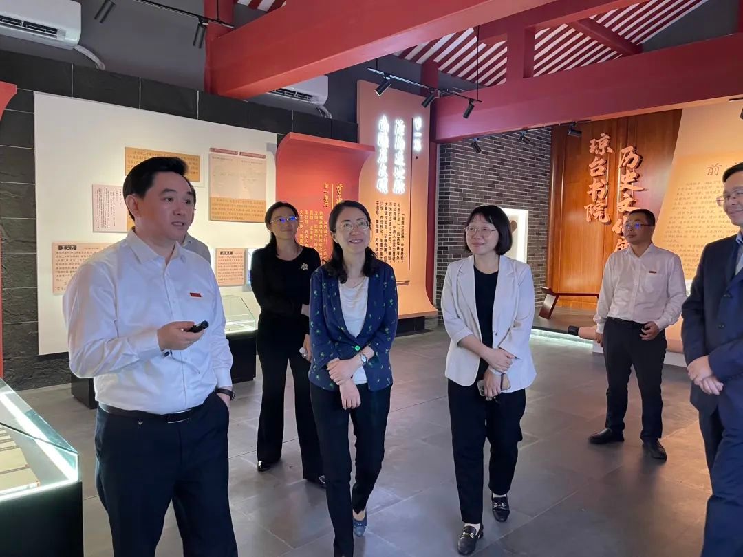 董竹娟一行来到我校府城校区琼台书院博物馆,参观了琼台书院历史文化展和琼崖革命思想摇篮展。吕治国首先介绍了文起琼州的简况以及琼台兴文教、办新学等历史。他谈到,学校办学历史悠久,底蕴深厚,三百余年文教不衰、弦歌不辍,一脉相承发展成今天的琼台师范学院,是海南书院教育的代表,也是海南进步思潮的发端,更是海南师范教育的起点,为海南历史上最有影响的官办学府。