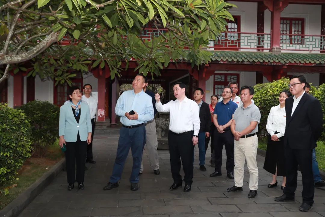 汪方怀一行到达府城校区琼台书院博物馆,参观了琼台书院历史文化展和琼崖革命思想摇篮展。吕治国首先介绍了我校办学历史和近年发展情况,他谈到,琼台书院建于清代康熙年间,三百余年弦歌不辍,是进士摇篮、革命摇篮、教师摇篮,是海南书院教育的代表,也是海南进步思潮的发端,更是海南师范教育的起点。