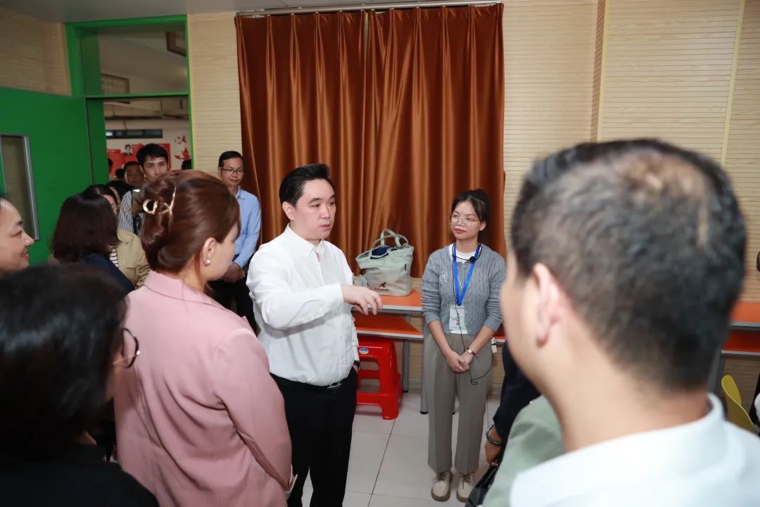 党委委员、宣传统战部部长曾德锦,党政办公室,教务处,外国语学院相关负责人和实习带队老师陪同巡查。