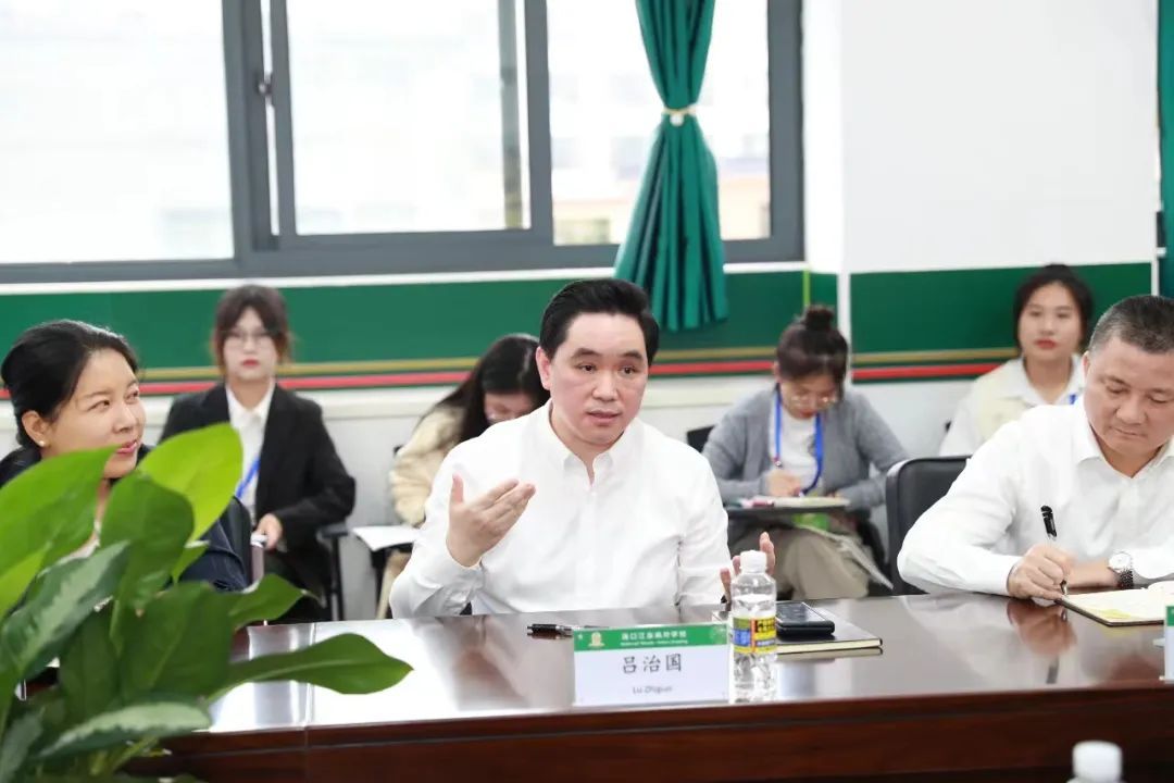 吕治国代表学校向海口江东枫叶学校领导和老师们对我校实习生的悉心指导和照顾表示感谢。他谈到,我校已有300多年的历史,是进士摇篮、革命摇篮、教师摇篮,是海南书院教育的代表,也是海南小教和幼教师资培养培训的主要基地。他指出,我校牢固树立“师范姓师”的理念,全面贯彻落实“876”战略和“1234”计划,找准“小幼特”(即小学、幼儿园和特殊教育)办学特色,更好地服务于自贸港建设对基础教育的需要,持续推动海南基础教育的高质量发展。他表示,海口江东枫叶学校在海南的基础教育领域是一块响亮的招牌,也是国际教育的一面旗帜,希望实习生们在校实习期间要培育家国情怀、传道情怀、仁爱情怀,要学习新知识、掌握新教法、提升新技能,要长才干、多参与、多观察,珍惜宝贵的青春,珍惜宝贵的学习机会,实现学有所成,练有所成。