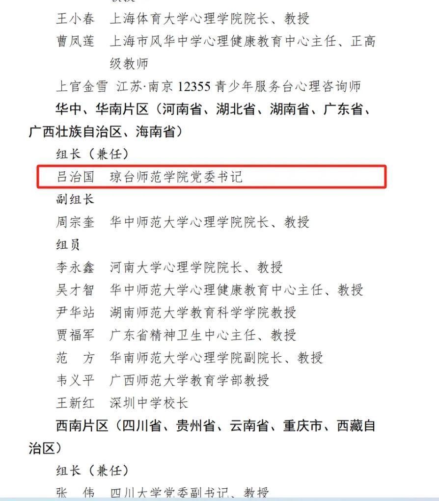日前,教育部印发通知,公布全国学生心理健康工作咨询委员会名单(以下简称咨询委员会),我校党委书记吕治国当选为全国学生心理健康工作咨询委员会副主任委员兼华中、华南片区(河南省、湖北省、湖南省、广东省、广西壮族自治区、海南省)组长。