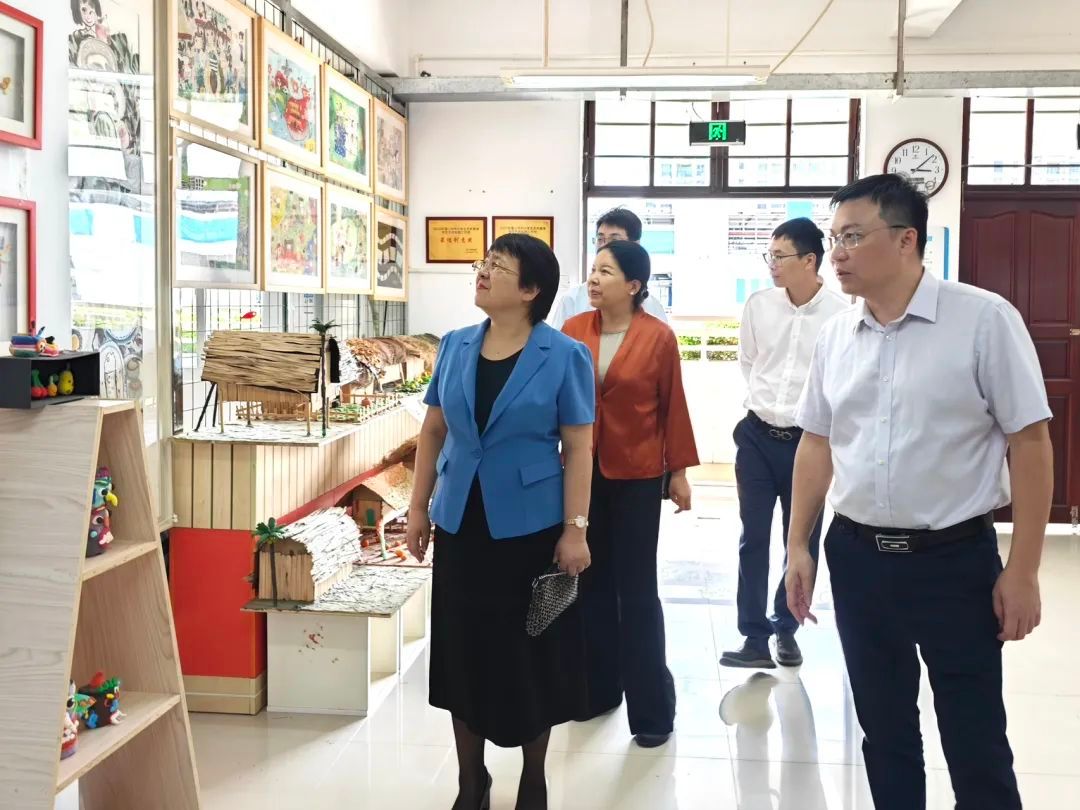 在海口市第二十五小学巡查期间,刘湘洪一行受到该校校长赵檀木、副校长葛海燕的热情欢迎,分别参观了该校美术室、书法室、致美书屋和学生书画作品展,走进了实习生的课堂,实地视察实习生的实习工作环境和工作状态,同实习生们进行亲切交谈,询问他们的工作条件,关心他们在实习期间有无遇到困难或需求,让学生充分感受到学校的关怀。