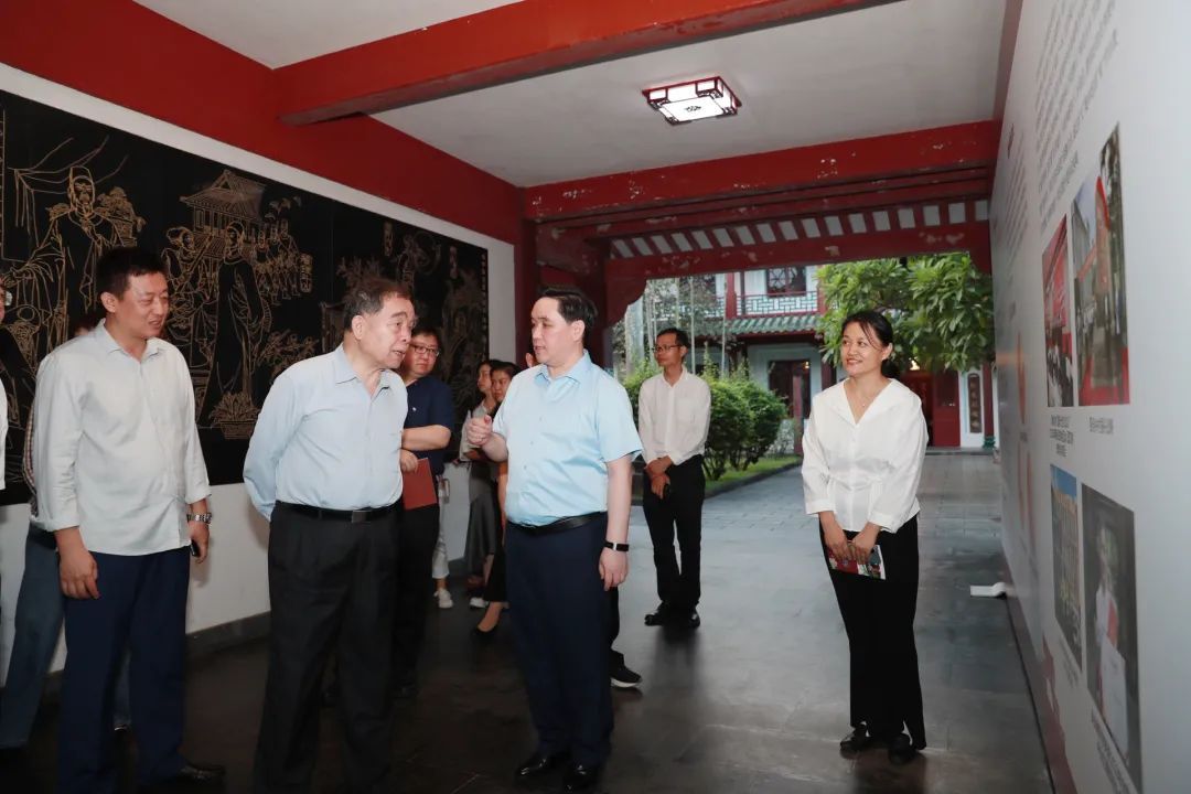 柳斌杰一行到达府城校区琼台书院博物馆,先后参观了琼崖革命思想摇篮展和学校人才培养成果展,听取吕治国书记关于学校办学历史介绍和近年发展情况等汇报。吕治国指出,我校努力办好文化教育事业,深入贯彻落实习近平总书记关于宣传思想文化重要指示精神,聚焦主责主业,办人民满意的琼台,办自贸港需要的琼台,持续为海南自贸港建设贡献教育力量。