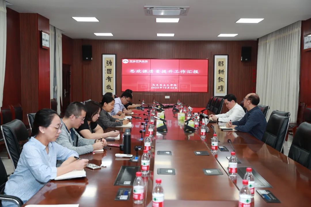 会上,纪委书记杨智平、副校长银海强分别就教师培养及团队建设、特色重点学科建设进行了发言;马克思主义学院院长戴彩虹作思政课教学质量提升工作汇报;其他参会人员相继谈了提升思政课教学能力的感想。