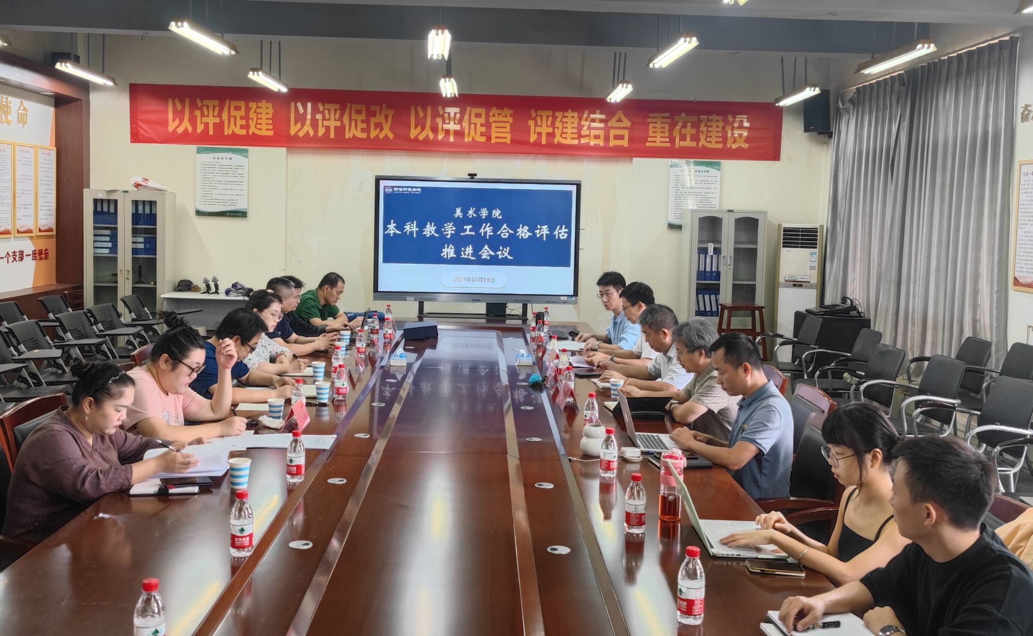 2023年10月19日上午,美术学院在美316会议室召开本科教学评估工作推进会议,银海强副校长莅临指导并督查评估进程情况,美术学院党政领导、各系主任、评估办、综合办、学工办及各二级指标负责人参加会议并汇报各自负责的评估工作情况。