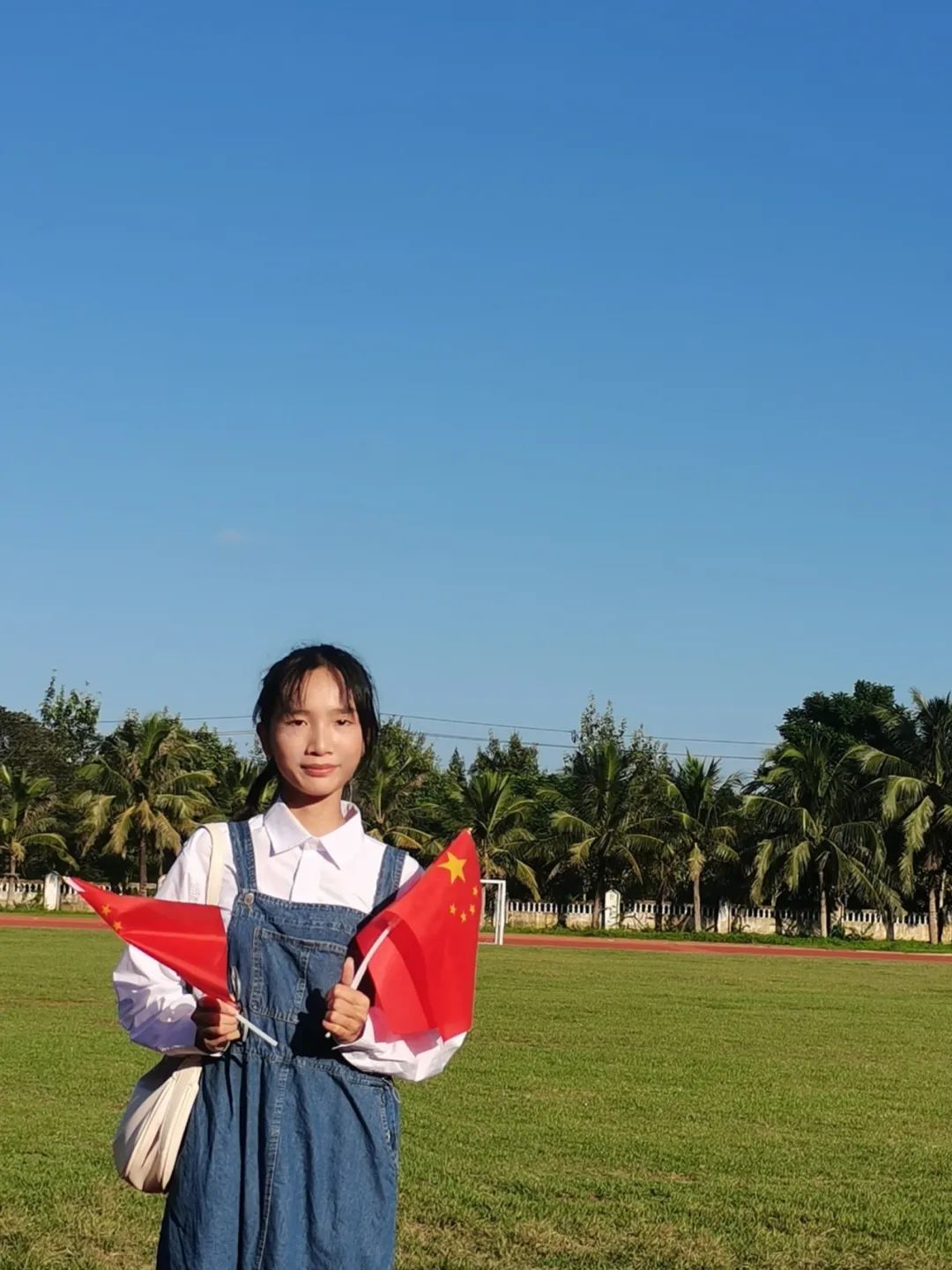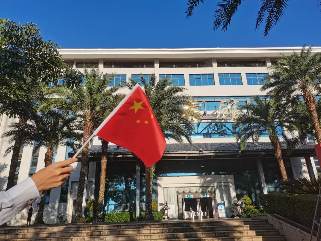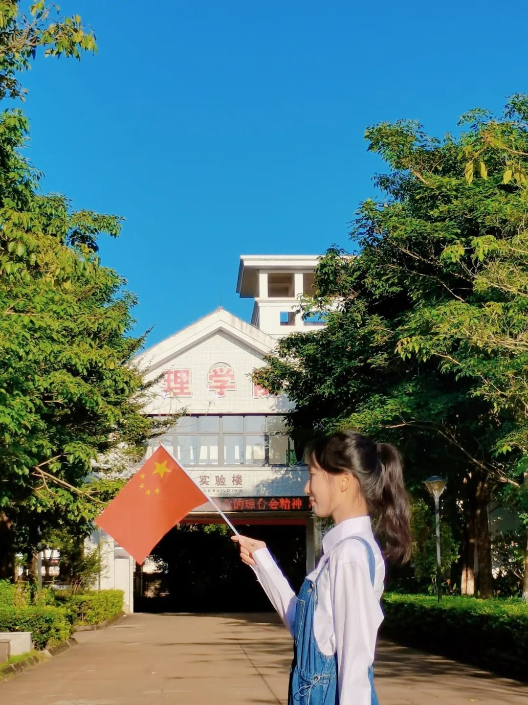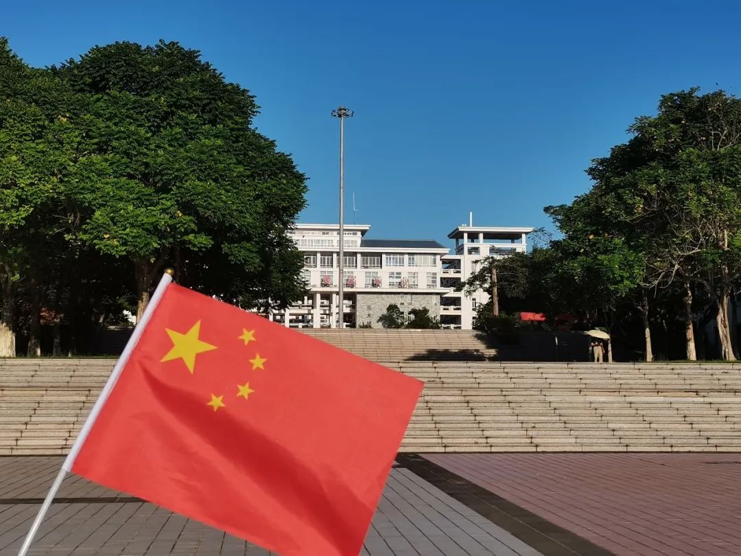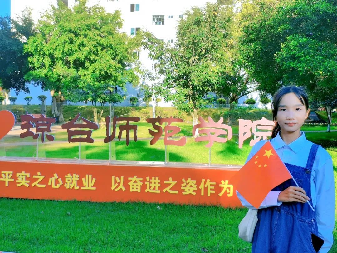 琼台学子挥动着旗帜