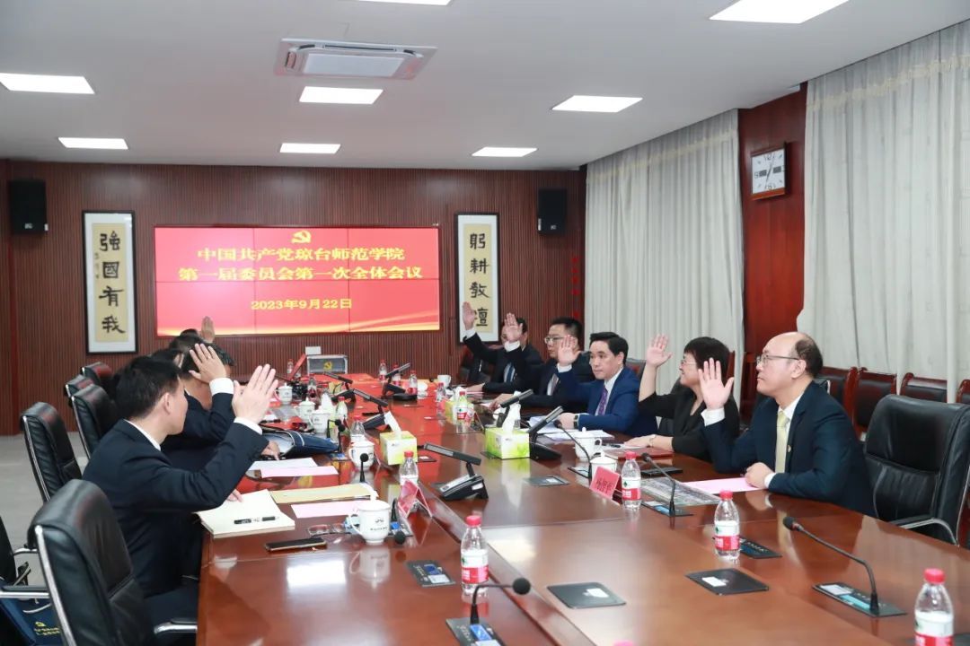 会议根据《中国共产党琼台师范学院第一届委员会第一次全体会议选举办法》选举中国共产党琼台师范学院第一届委员会书记、副书记。吕治国同志当选为党委书记,刘湘洪同志当选为党委副书记。