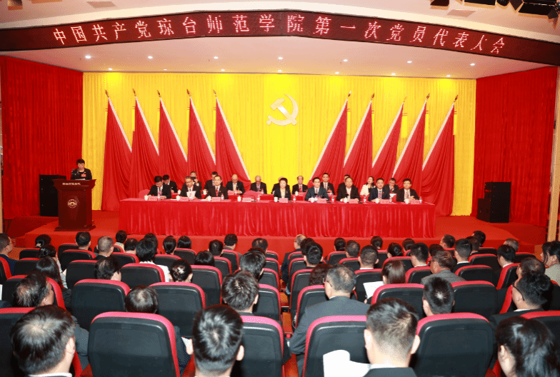 桂林洋校区图书馆报告厅的大会会场气氛庄严而热烈,主席台正上方悬挂着“中国共产党琼台师范学院第一次党员代表大会”的横幅,帷幕中央金黄色的党徽光彩夺目,十面鲜艳的红旗分列两侧。来自全校的党员代表和列席代表们肩负广大师生的重托,精神饱满,目光坚毅,步伐铿锵地步入会场,他们齐聚一堂,豪情满怀,共商学校发展大计。
