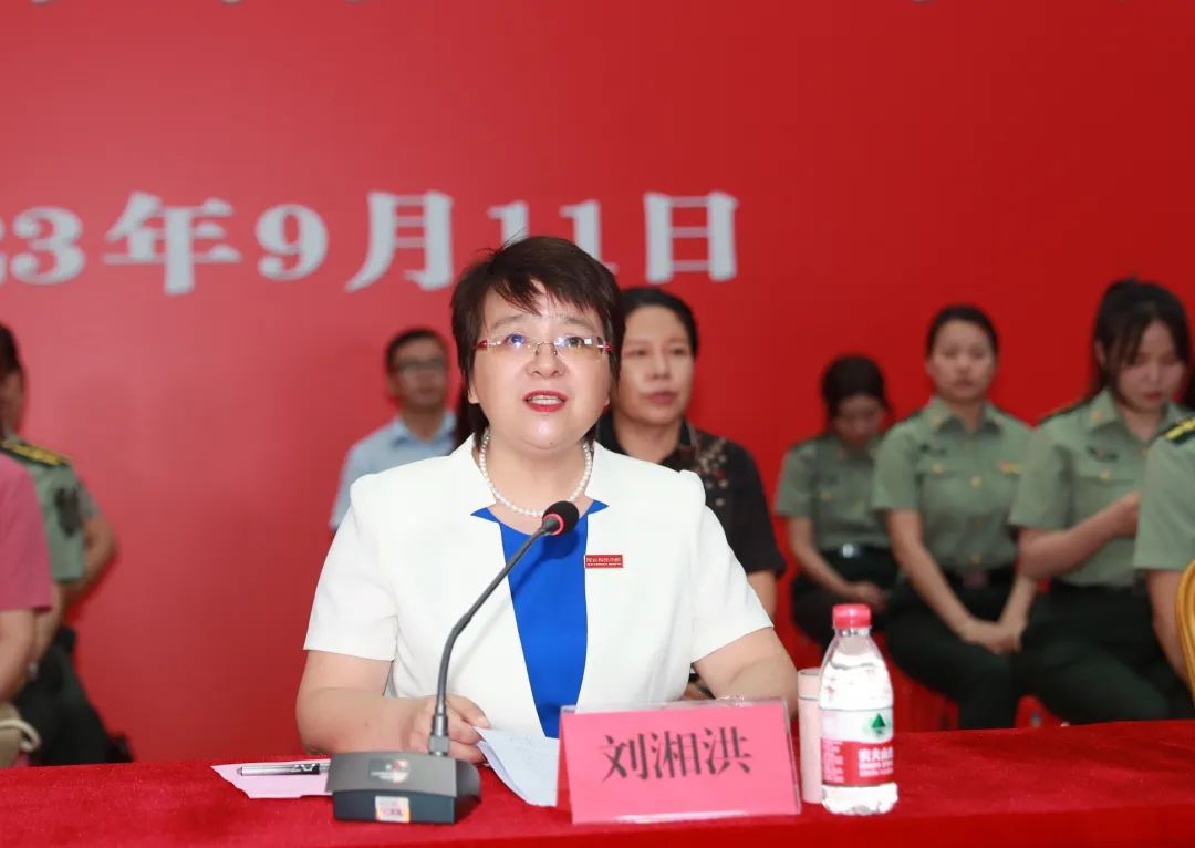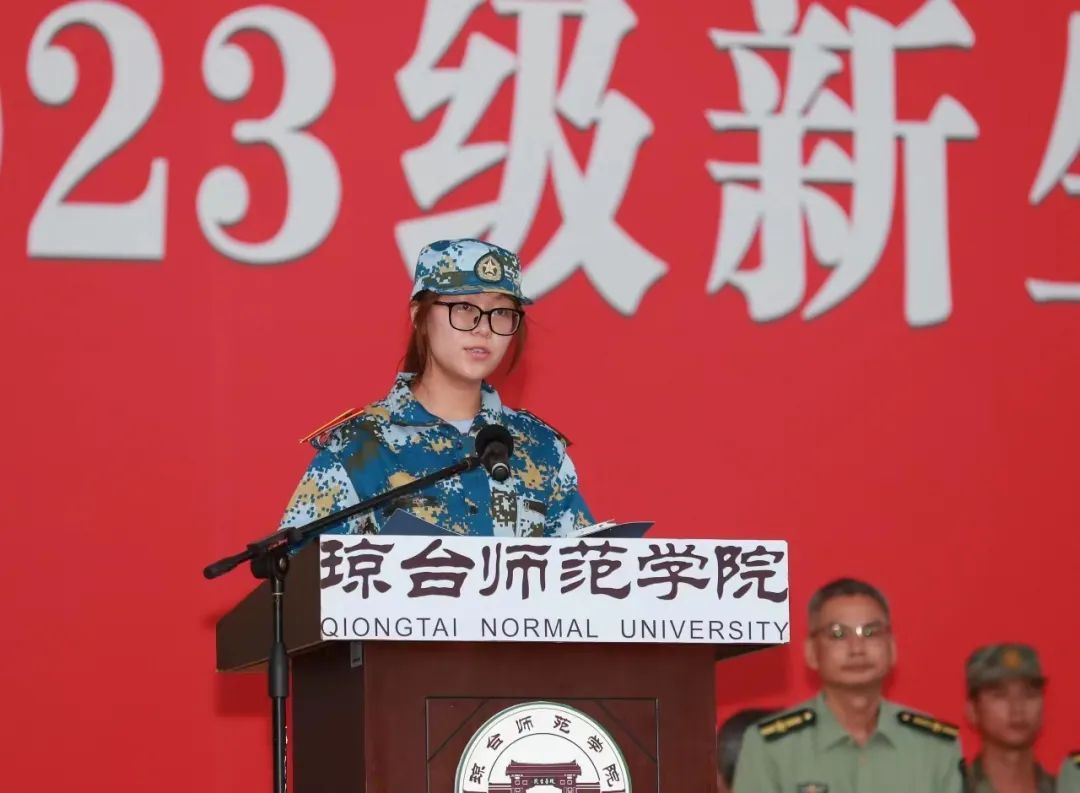 刘湘洪代表学校和全体师生向承训单位和教官致以崇高的敬意和诚挚的谢意,并对来自五湖四海的全体新同学表示热烈的欢迎!