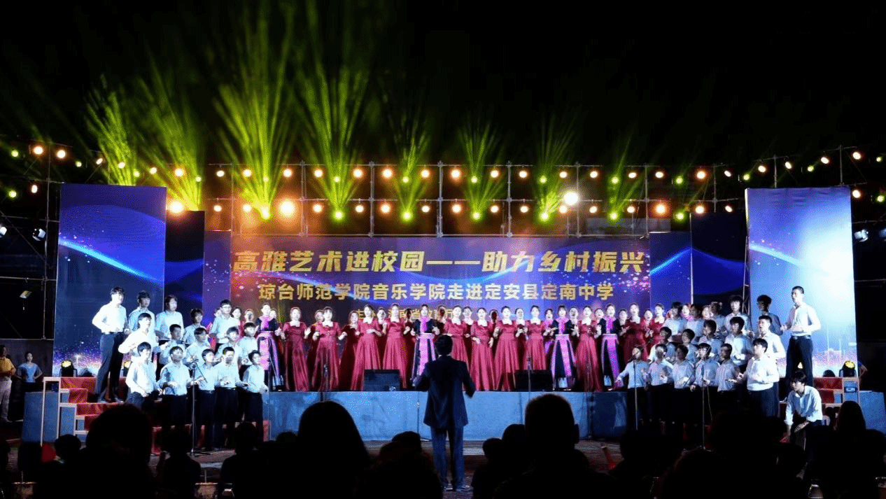 为深入贯彻落实党的二十大精神,高质量推进学习贯彻习近平新时代中国特色社会主义思想主题教育。5月23日,由海南省教育厅主办,定安县委县政府、琼台师范学院承办,定安县教育局、定安县龙门镇委镇政府、定安县定南中学协办的“高雅艺术进校园·助力乡村振兴”文艺晚会在定南中学体育场隆重举行。我校党委副书记陈晖阳,定安县委常委、县政府党组成员卢刚,定安县委常委、宣传部长王友明,定安县委常委、县政府副县长陈茜,定安县人大常委会主任李衡,定安县教育局局长莫继芬,我校音乐学院院长贾志宏,党总支书记刘才喜,副院长庄小清,副院长陈怡出席本次活动。