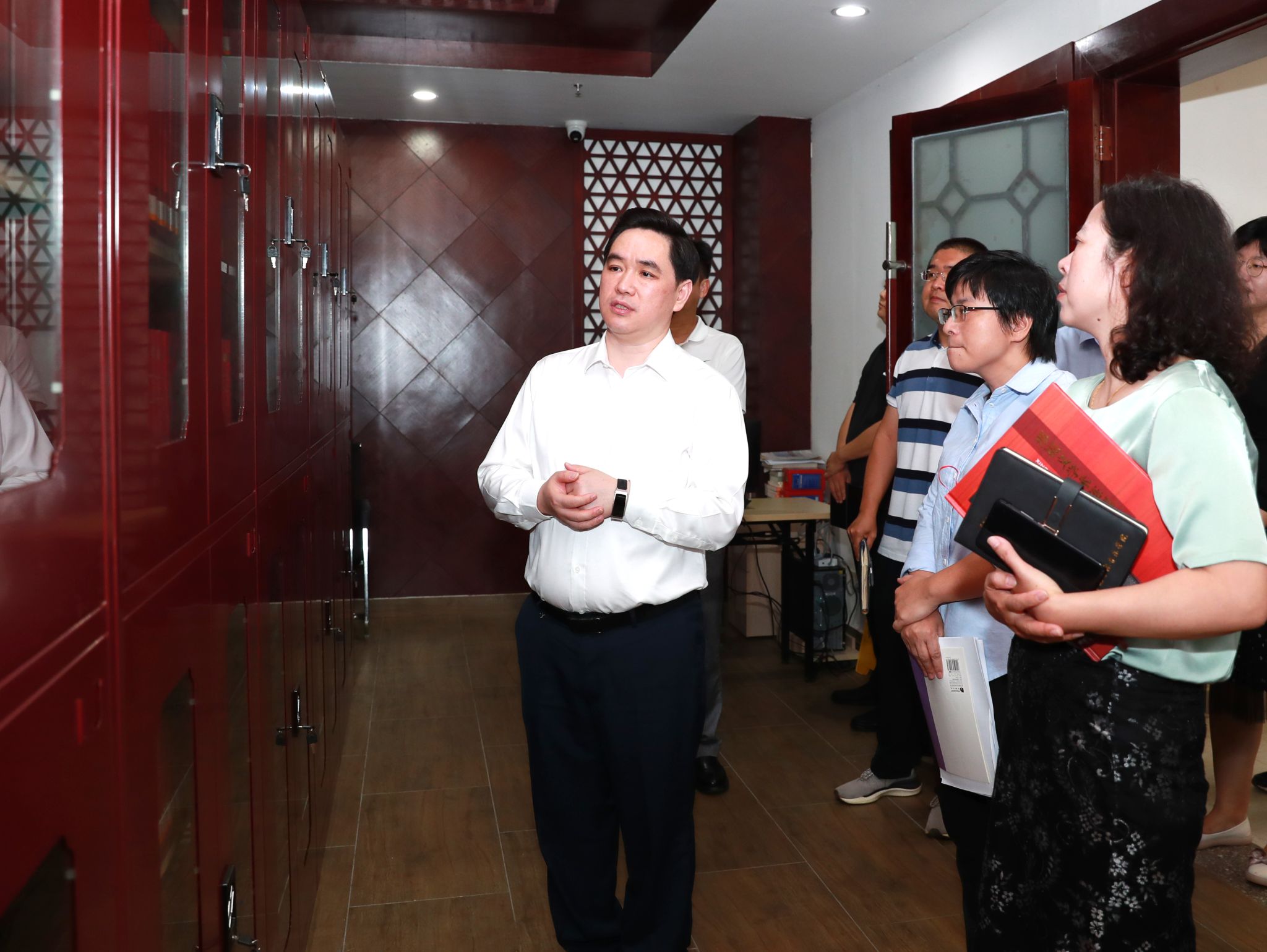 吕治国实地考察了图书馆内廉洁文化阅览区、教育史料馆、古籍室、教师发展空间等场地并和在场师生进行了亲切交流。座谈会上,吕治国听取了副校长韩君华,图书馆馆长符方健,副馆长吴海春、谢硕研的有关工作汇报。