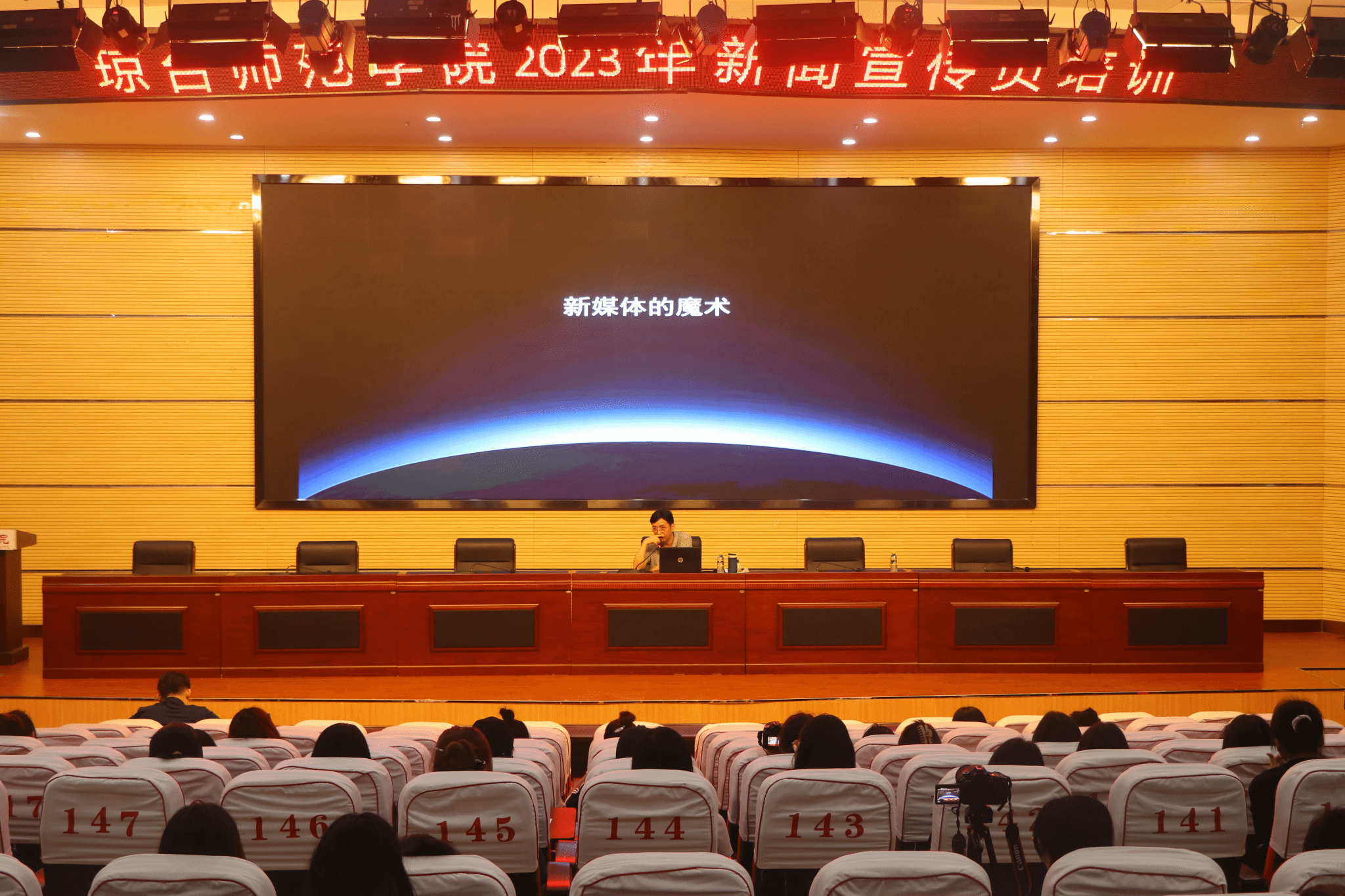 为加强新闻宣传队伍建设、提高新闻宣传质量、营造良好的舆论氛围。4月26日,我校举办琼台师范学院2023年新闻宣传员培训会。特邀海南日报社编委、法治时报社社长陈成智作《新媒体的魔术》的培训讲座。