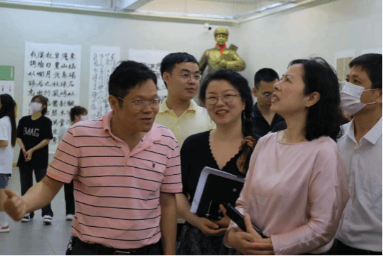 开幕式后,师生一起参观了展览,各位作者分别介绍了他们的参展作品以及创作理念。参观过程中,林尤葵老师和其他书法老师一直也在指导学生,更是一场生动的教学实践活动。
