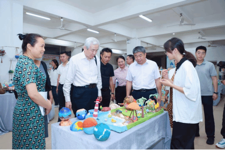 副校长银海强陪同国培计划考核专家组成员参观了展览,专家们肯定了学前专业的学生们能够合理利用本土资源,结合所学专业技能,创作丰富多样的手工作品,勉励学生们成长为有责任、有担当、有爱心、有童心的“四有”好老师。并对作品提出意见:可以与现代信息技术相结合的方式,运用光、电的高科技手段融合到作品当中,增加和拓展与科技相融合的方法和路径,争取作品质量更上一个台阶。