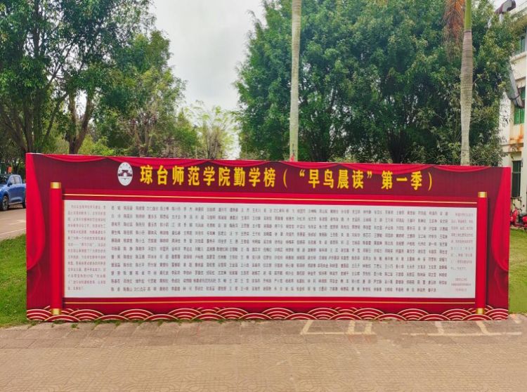开学伊始,为构建学校优良学风,在琼台师范学院党委的高度重视下,学生工作部、校团委联合后勤基建处以培养大学生良好的生活及学习习惯为抓手,组织了一场受众广、效果佳、可持续的学风建设活动——“早鸟行动”,即开学一个月内所有在校生在7:15前奔赴食堂用餐,就可以享受全场早餐半价。同时,连续完成21天“早鸟晨读”打卡计划,即可荣登琼台师范学院“勤学榜”。