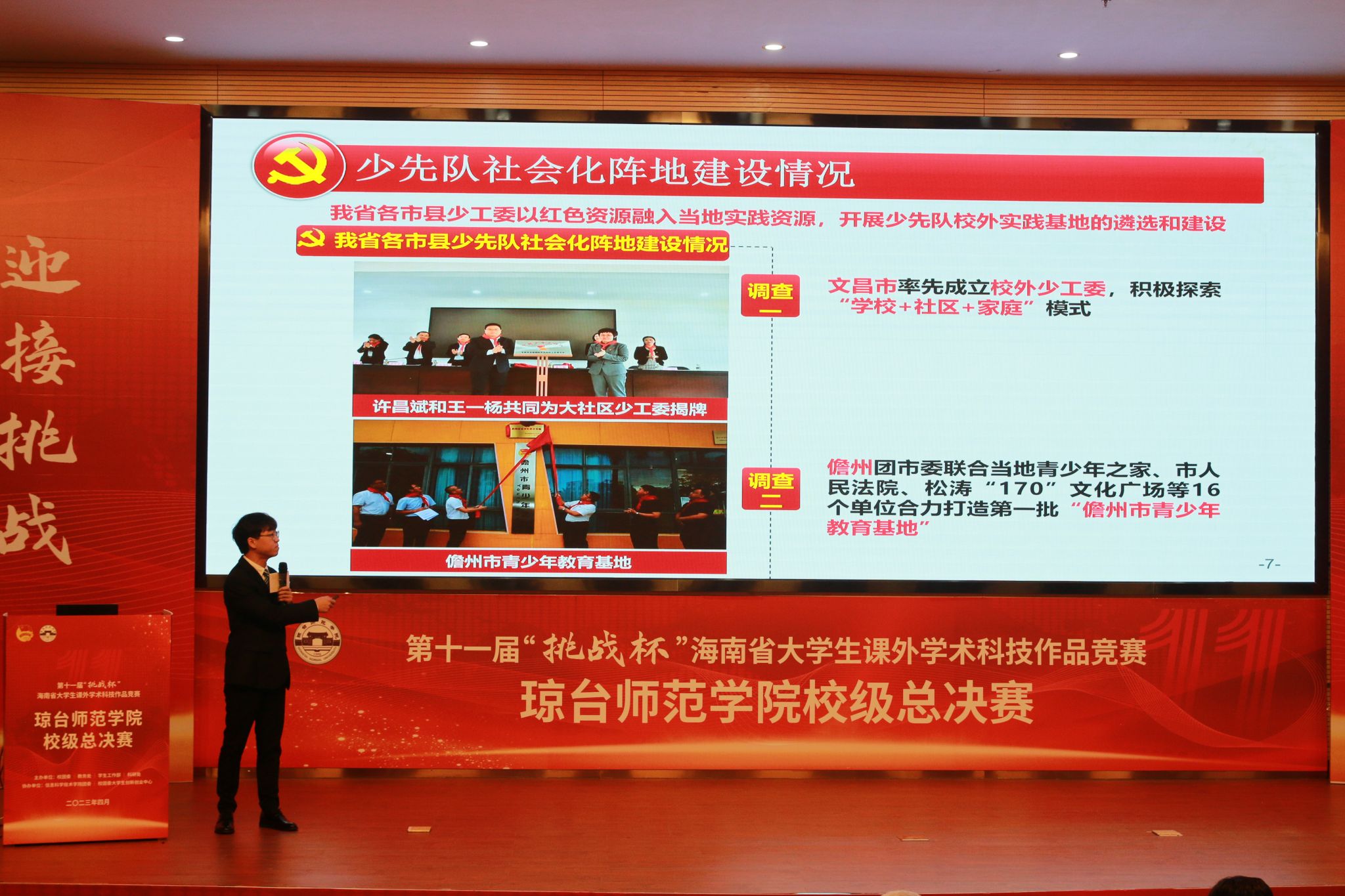 校团委以“挑战杯”为抓手,坚持做好聚焦主责主业,强化实践育人,引领琼台学子投身科技创新的时代浪潮,为实现中华民族伟大复兴的中国梦、海南自贸港建设贡献青春力量。
