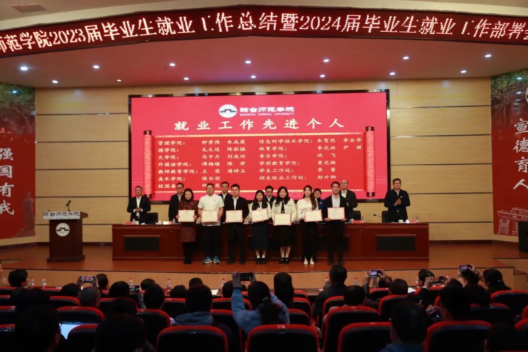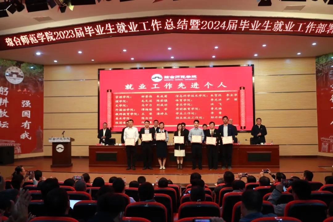 党政办公室、招生就业工作处、宣传统战部、教务处、学生工作处、校团委、财务处、教学质量监测与评估中心等部门主要负责人,招生就业工作处全体干部;各二级学院党政主要负责人、系主任、全体辅导员、班主任以及获奖代表等近200人参加会议。