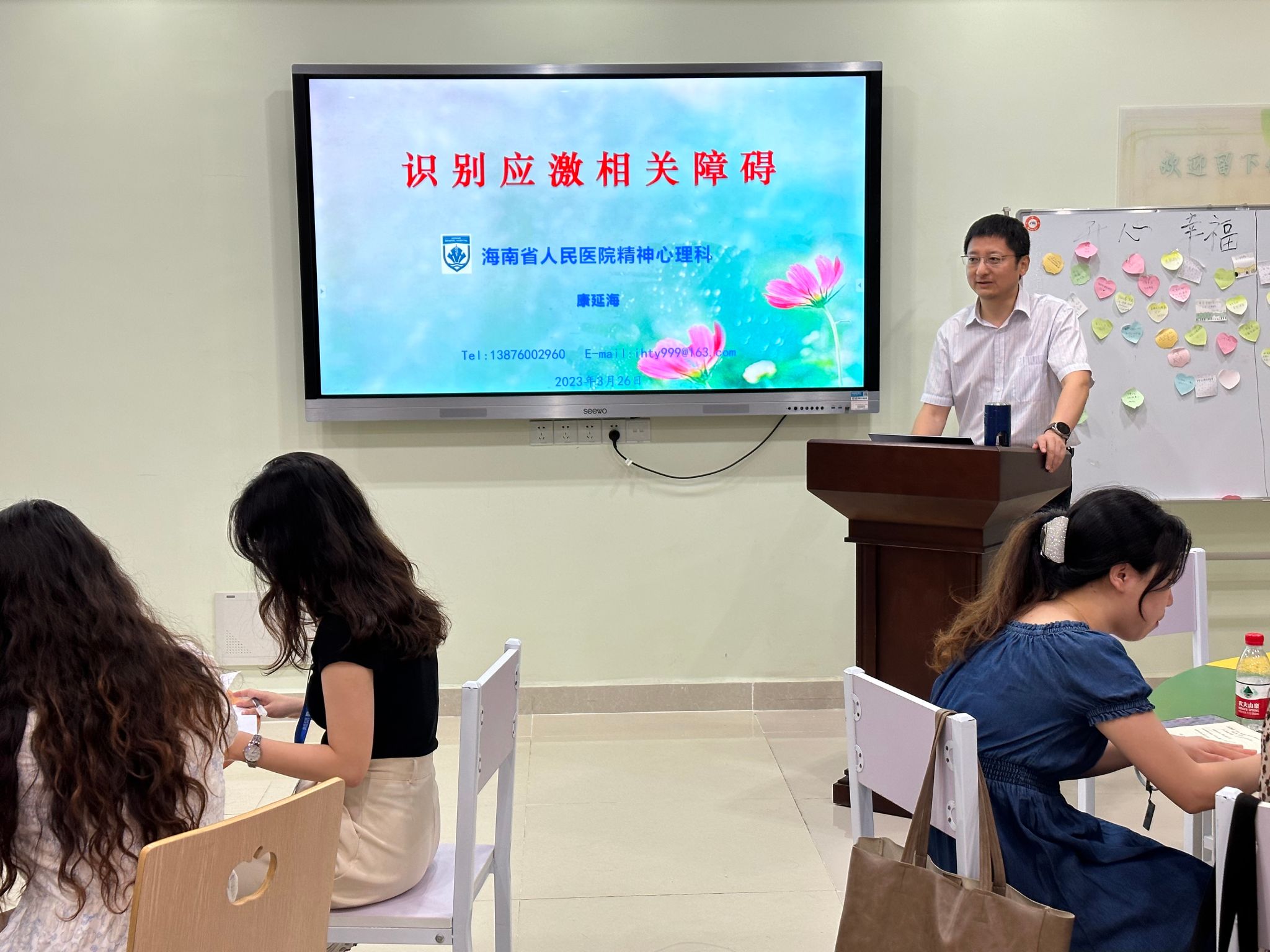 本次培训分线上线下两个部分,线上培训开始于2023年3月21日,由学员自行安排时间学习,在2023年4月18日前完成线上课程的学习。线下培训于2023年3月24日-26日进行,共进行3天,由5名精神科专家、心理学专家进行授课,课程内容包括辅导员团体辅导技能提升、家校沟通、学生谈心谈话技巧、大学生心理问题识别与评估、心理危机干预实操等。