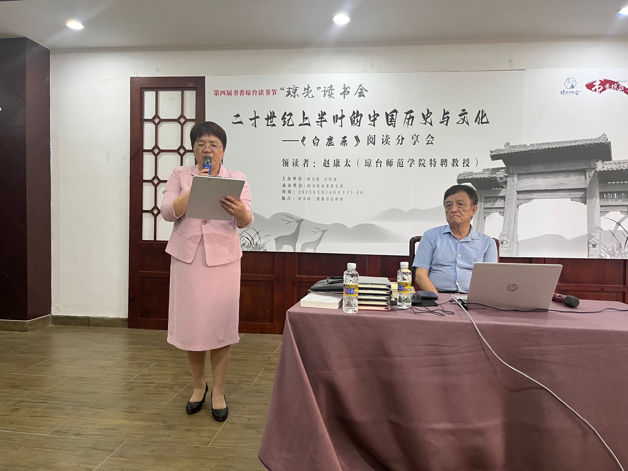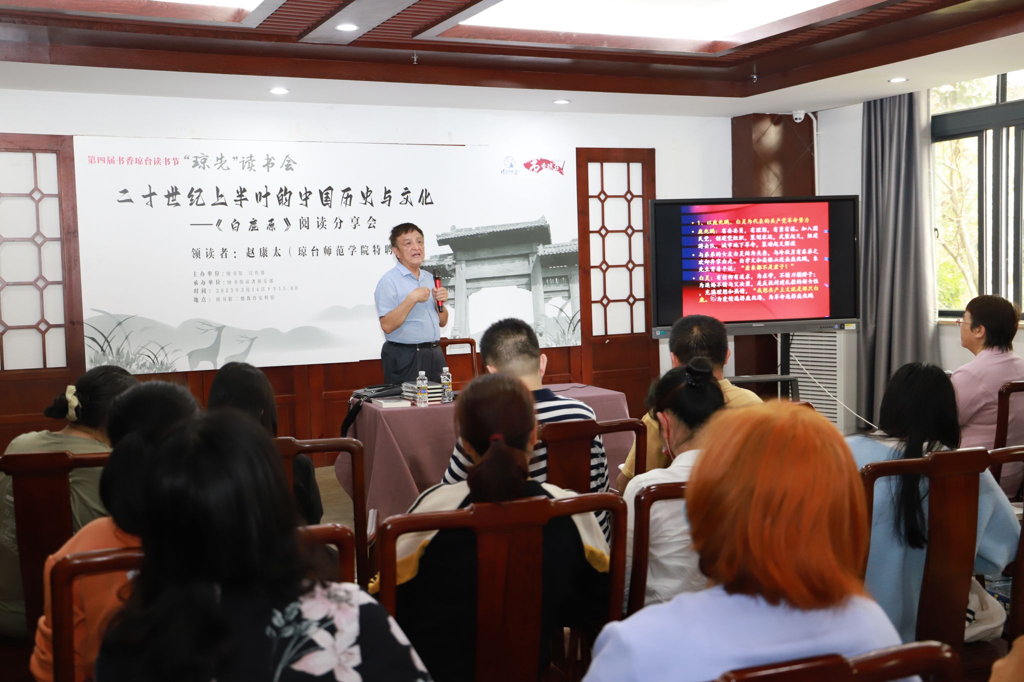 本次读书会学校邀请琼台师范学院特聘教授赵康太老师担任领读者,刘湘洪校长主持讲座,来自各个学院的100余名师生到场参加。