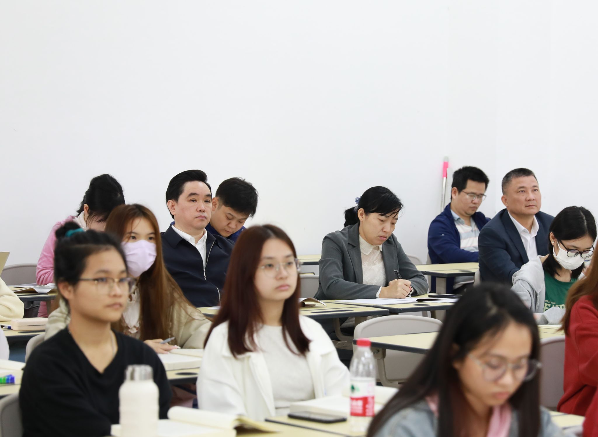 课后,刘湘洪校长与任课教师进行了沟通交流,对课堂教学效果和同学们的课堂表现给予充分肯定。刘校长强调,教师是教育工作的中坚力量,高质量的教育离不开高质量的教师。上好一堂课是教师安身立命之本,讲好精彩一课,要求教师练好基本功。同时,要求认真学习习近平总书记关于教育的重要论述,学习如何做一名优秀的人民教师,培养好一代又一代的社会主义接班人。最后,刘校长亲切寄语学生,在大学期间要珍惜时间,把握学习机会,勤学奋斗,增长才干,努力为中国特色社会主义教育事业贡献力量。