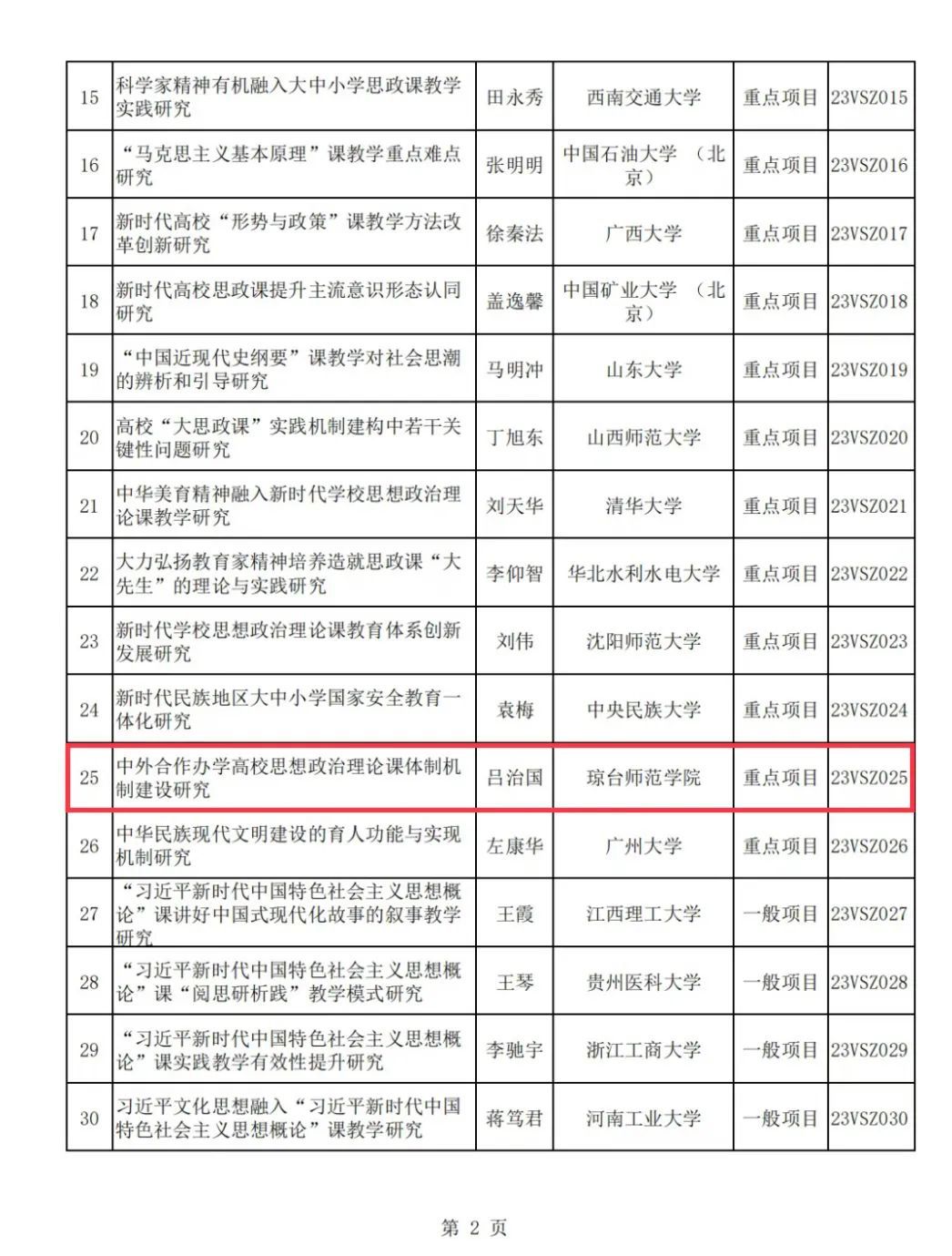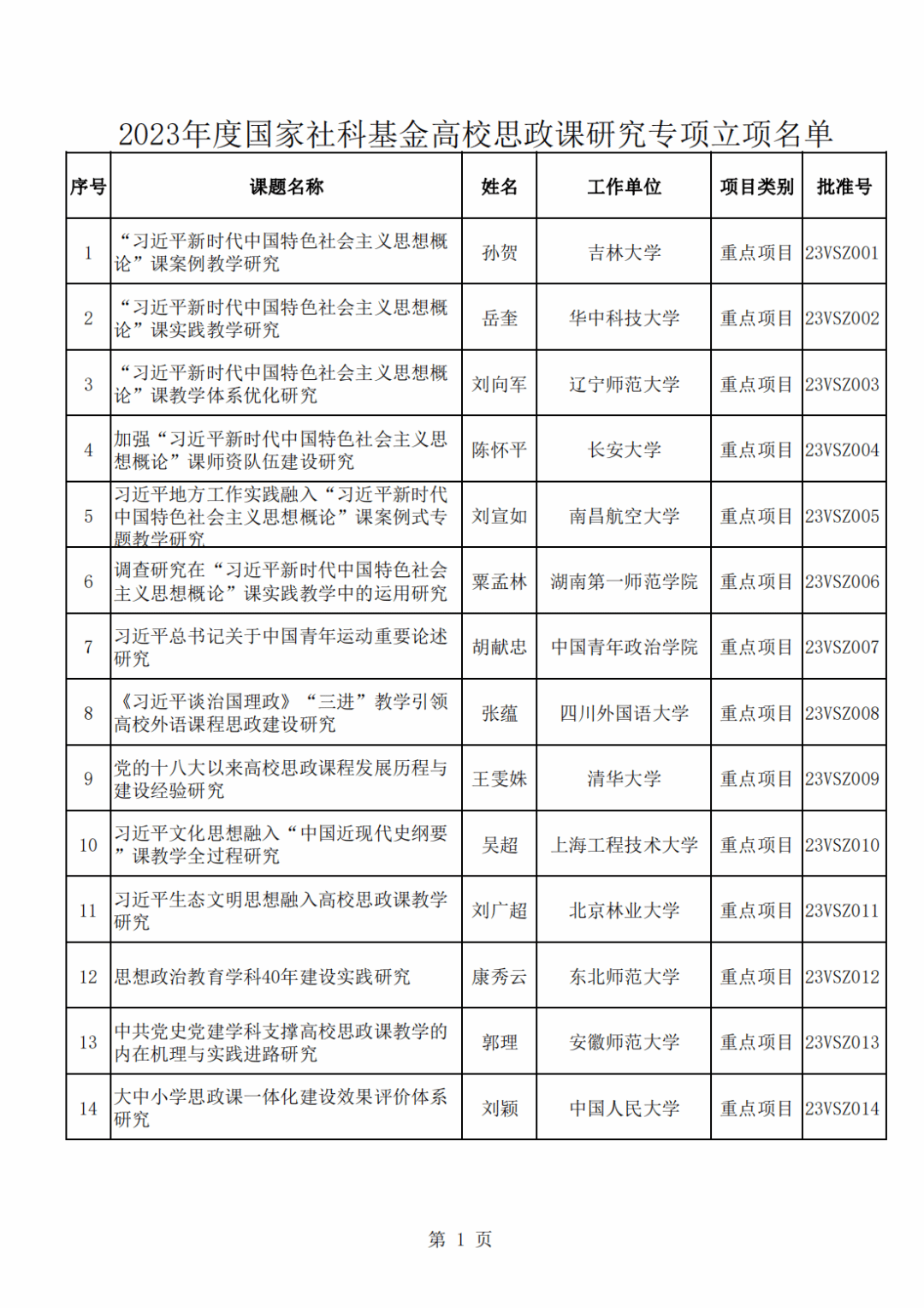 近日,经专家评审、社会公示并报全国哲学社会科学工作领导小组批准,全国哲学社会科学工作办公室公布了2023年度国家社科基金高校思政课研究专项立项名单,共171项,其中重点项目26项。