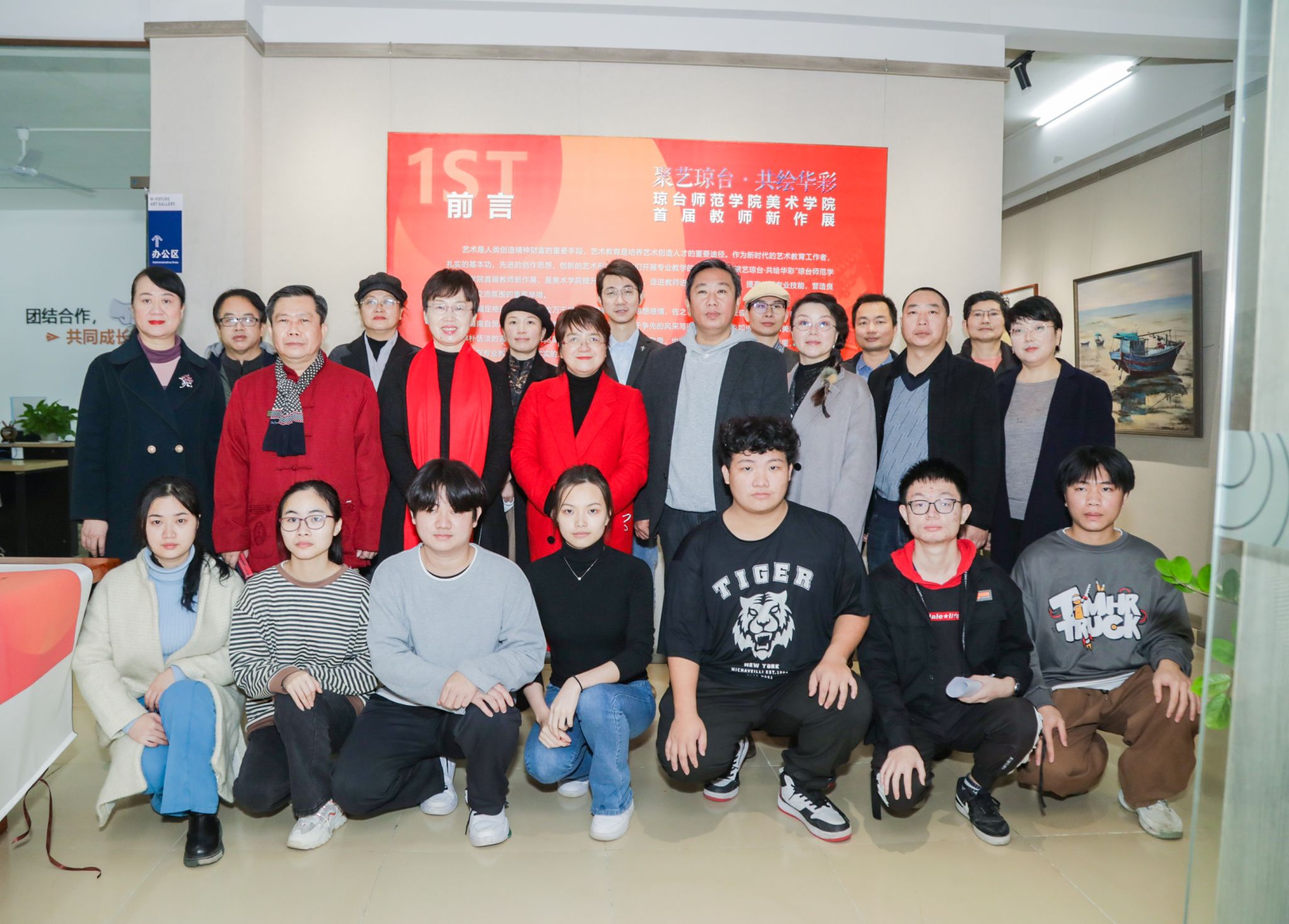 新年伊始,万象更新,在春节即将到来之际,我校美术学院首届教师新作展暨美术学院艺术创作研究中心揭牌仪式在未见·未来艺术馆隆重举办。校长刘湘洪,海南省美术家协会副主席、秘书长王锐,未见·未来艺术馆馆长卫军红,招生就业处处长林琼花,美术学院副书记、副院长刘小莉,教学质量监测中心副主任王康媚,美术学院副院长周乃林、沈速、徐劼,海南省文化艺术教学指导委员会主任许劭艺,海南省文化创意研究院院长房景峰,九三学社海南省直属十支设主委曹银桥,海南省美术家协会副秘书长梁增权等领导和嘉宾出席此次活动。