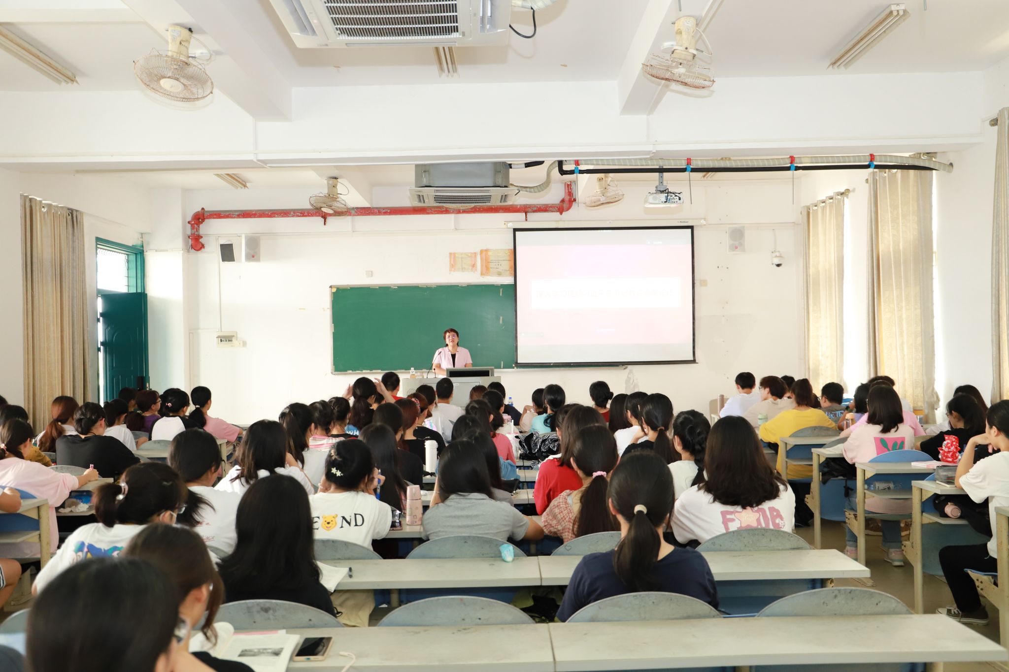 课间,刘湘洪校长深入学生当中,询问同学们为什么选择师范专业,并就如何学好师范专业与学生亲切交谈。她勉励同学们要增强作为师范生的信心和底气。她指出,同学们作为师范专业的学生,肩负着新时代教育强国的时代使命,责任重大,使命光荣,要认真学习习近平总书记关于教育的重要论述,胸怀理想、脚踏实地,努力在提升个人专业能力和素养方面下功夫,不断增强教书育人本领,争取成长为一名让党和人民满意的“四有”好教师。最后,她还从学生的专业出发,结合个人的读书经历,给同学们推荐了阅读书目。