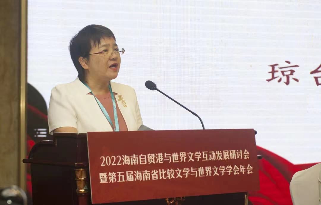 海南省比较文学与世界文学学会会长罗璠致辞中指出,学会是联系文学研究者的桥梁与纽带,是发展海南省比较文学与世界文学事业的重要社会力量,要进一步团结和凝聚海南省比较文学与世界文学学术力量,提升文化自信并打造本土文化创新品牌。