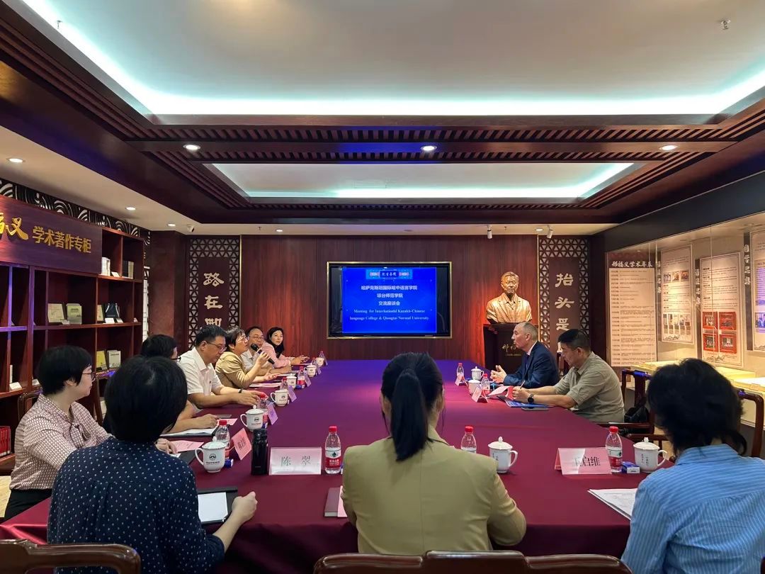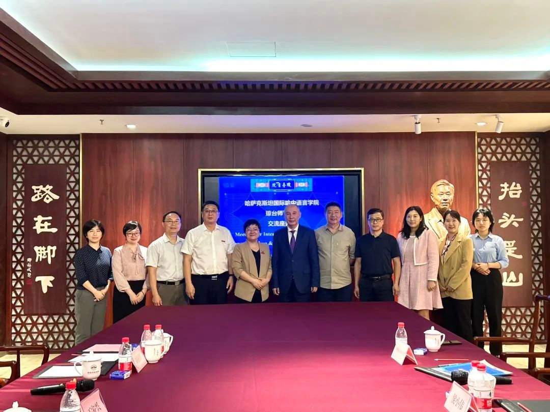 塔勒哈特·马木尔吾勒对我校的热情接待表示感谢。他详细介绍了哈萨克斯坦国际哈中语言学院的基本情况、专业设置、在校学生情况与学业成就。他表示,国际哈中语言学院学生对汉语学习兴趣浓厚,希望双方在语言、专业课和旅游专业等方面加强合作培养,并建立长期合作。
