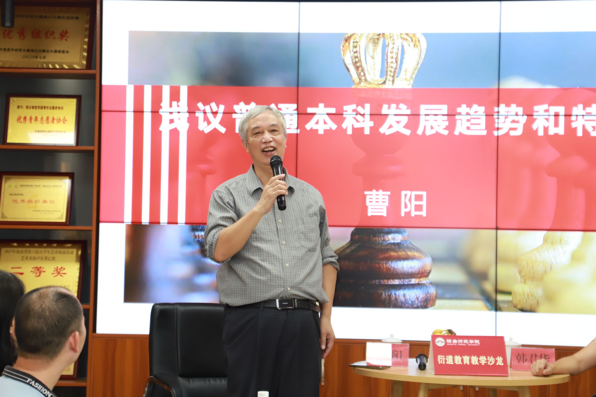 10月21日下午,琼台师范学院衍道教育教学第一期沙龙活动在图书馆报五楼创新创业基地成功举办。本次沙龙活动特邀我校原党委书记曹阳教授担任主讲人,韩君华副校长担任主持人,纪委书记杨智平、教务处、团委、各二级学院的领导和教师共四十余人参与了沙龙活动。