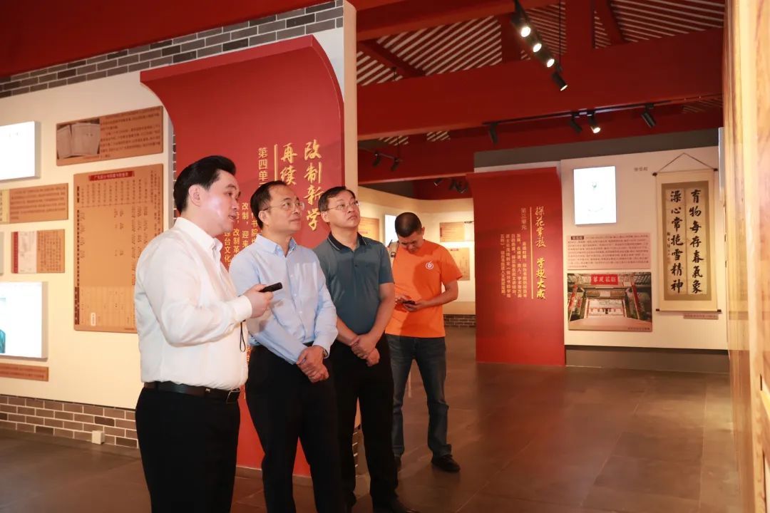 翁朝健一行来到我校琼台书院博物馆,在吕治国的引导下先后参观了琼台书院历史文化展和琼崖革命思想摇篮展,重温了在琼台书院发生的海南经典民间故事《搜书院》。吕治国从进士摇篮、革命摇篮、教师摇篮等方面介绍了我校三百余年弦歌不辍的办学历史,说明了我校作为海南书院教育的代表、海南进步思潮的发端及海南师范教育的地点的历史地位。