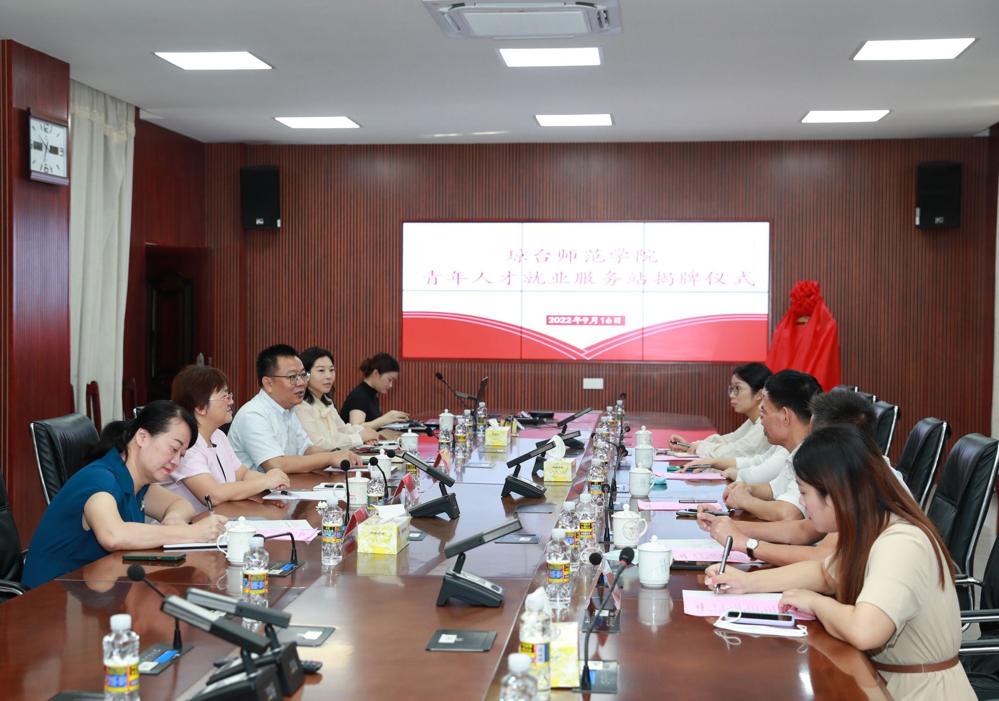 9月16日上午,海南就业驿站——青年人才就业服务站在我校桂林洋校区举行揭牌仪式。海南省人力资源开发局二级巡视员陈振聪、省人力资源开发局人才管理服务处副处长陈肇平,智联招聘海南区域有关负责人,我校校长刘湘洪、副校长王华出席仪式,招生就业工作处、党政办等相关部门负责人参加仪式。揭牌仪式会由王华副校长主持。