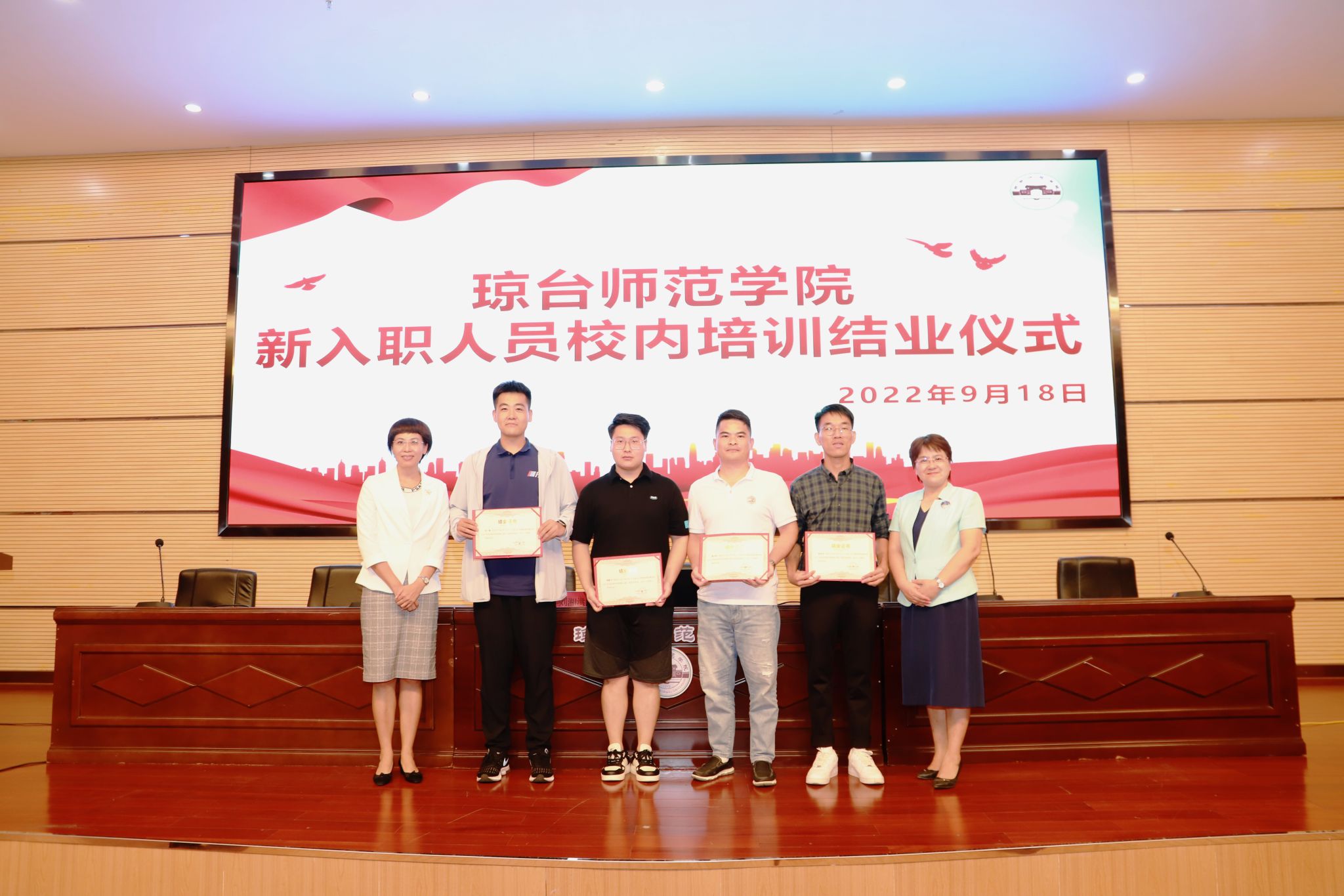 入职培训结业典礼上,青年教师何华珍、孙雨笛代表参训学员分享培训体会。她们表示培训帮助新教师们进一步找准了职业定位,坚定未来的奋斗方向,作为新琼台人将秉承琼台传统,做好本职工作为学校高质量发展贡献力量。