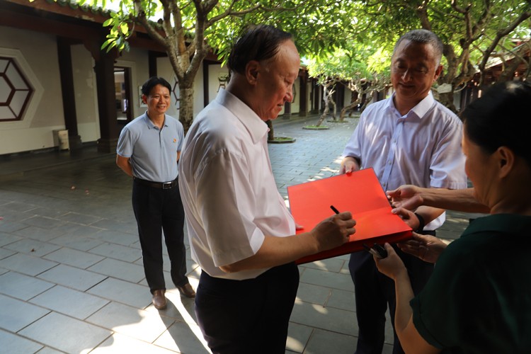 朱善璐会长一行在我校李湖书记、曹阳校长的陪同下参观了琼台书院博物馆,详细观看了琼台:琼崖革命思想摇篮展主题教育。朱善璐会长充分肯定了我校以党史与校史相容的方式建设红色展馆,并强调全国高校能做这种红色校史展览的没几所。