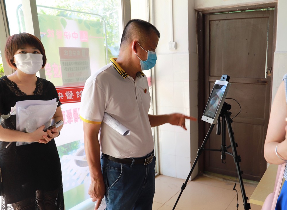 验收组在学校食堂检查