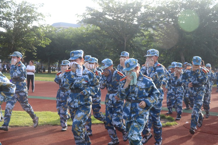 本次消防演练活动主要分为紧急疏散演练、灭火器灭火演练、伤员救护演练三个部分。随着警报声响起,各位老师及时准确地到达指定位置,有序组织学生迅速疏散。在疏散过程中,师生们根据预定路线,捂住口鼻,弯腰前行,统一呈两路纵队靠右下楼,快速有序撤离到安全地带。消防官兵向师生们详细介绍了各种消防器材的使用情况,并在现场一一做了演示。在消防官兵的指导下,来自各营的学生代表实际操练,学习使用了灭火器等器材。伤员救护演练时,医护人员首先向全体师生讲解救护知识,紧接着两组学生代表进行救护实操。四位学生现场演示如何进行徒手心肺复苏,从评估现场安全、判断伤员意识、高声呼救、检查有无心跳到开始胸外按压、进行人工呼吸,各个步骤百名救护员做得整齐流畅、规范严谨,博得阵阵掌声。